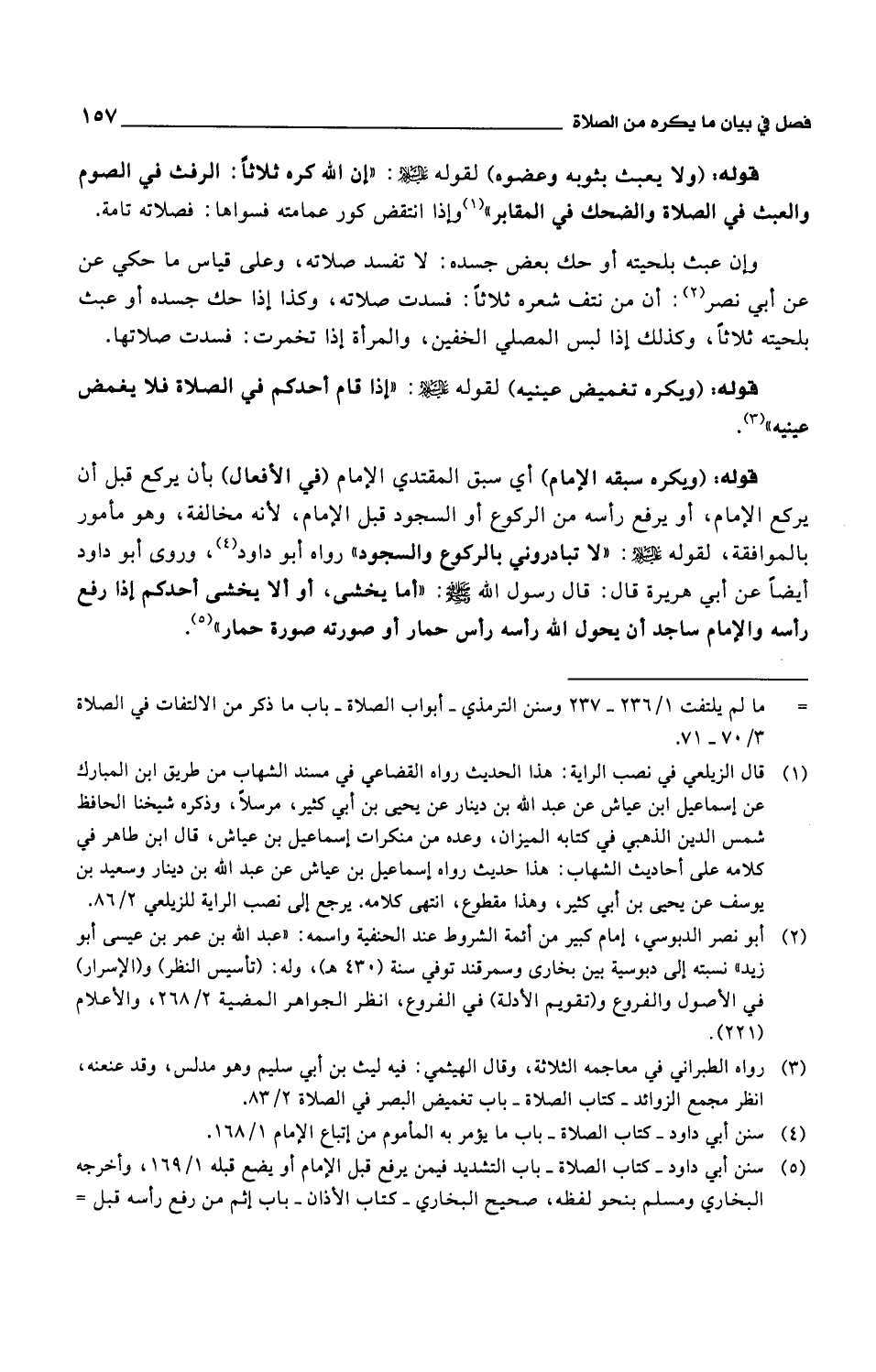 قوله: (ويكره سبقه الإمام) أي سبق المقتدي الإمام (في الأفعال) بأن يركع قبل أن يركع الإمام، أو يرفع رأسه من الركوع أو السجود قبل الإمام، لأنه مخالفة، وهو مأمور بالموافقة، لقوله عليه السلام: "لا تبادروني بالركوع والسجود" رواه أبو داود، وروى أبو داود أيضاً عن أبي هريرة قال: قال رسول الله صلى الله عليه وسلم: "أما يخشى، أو ألا يخشى أحدكم إذا رفع رأسه والإمام ساجد أن يحول الله رأسه رأس حمار أو صورته صورة حمار".