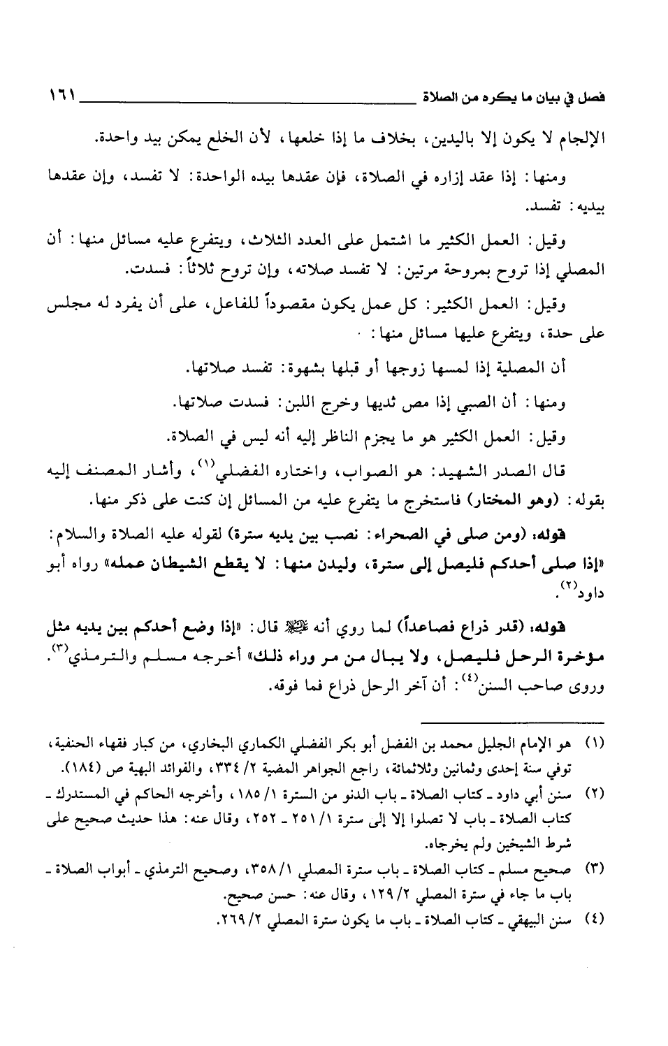 ومنها: إذا عقد إزاره في الصلاة، فإن عقدها بيده الواحدة: لا تفسد، وإن عقدها بيديه: تفسد.
