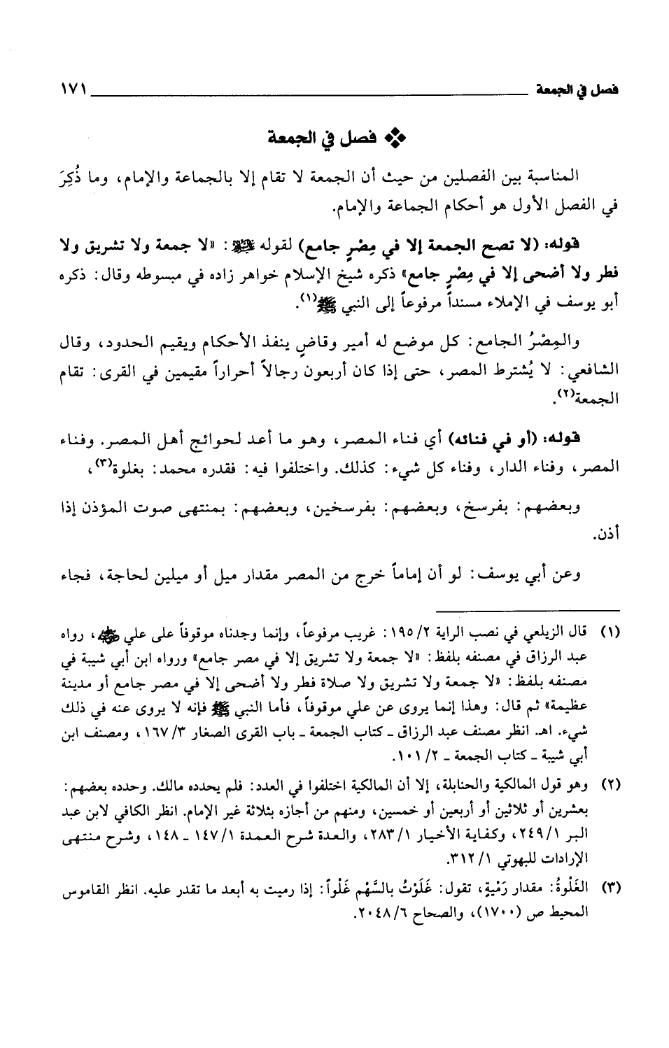 المناسبة بين الفصلين من حيث أن الجمعة لا تقام إلا بالجماعة والإمام، وما ذكر في الفصل الأول هو أحكام الجماعة والإمام.