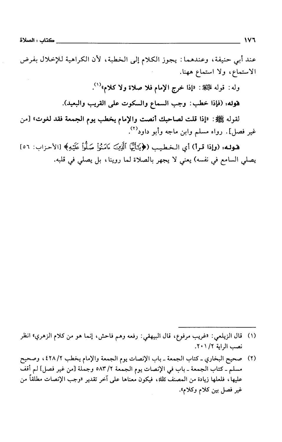 لقوله صلى الله عليه وسلم: "إذا قلت لصاحبك أنصت والإمام يخطب يوم الجمعة فقد لغوت" [من غير فصل]. رواه مسلم وابن ماجة وأبو داود.