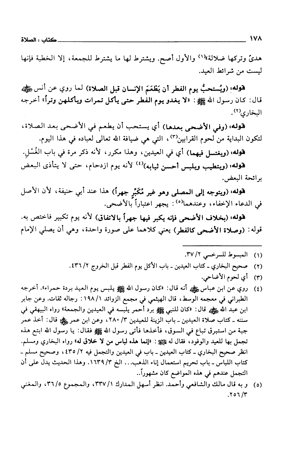 هدى وتركها ضلالة" والأول أصح. ويشترط لها ما يشترط للجمعة، إلا الخطبة فإنها ليست من شرائط العيد.