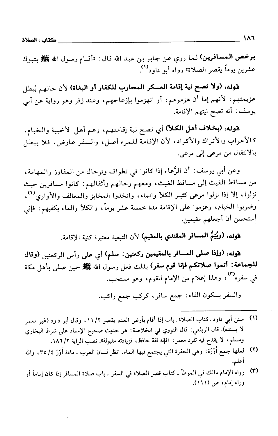 برخص المسافرين) لما روي عن جابر بن عبد الله قال: "أقام رسول الله صلى الله عليه وسلم بتبوك عشرين يوماً يقصر الصلاة" رواه أبو داود.