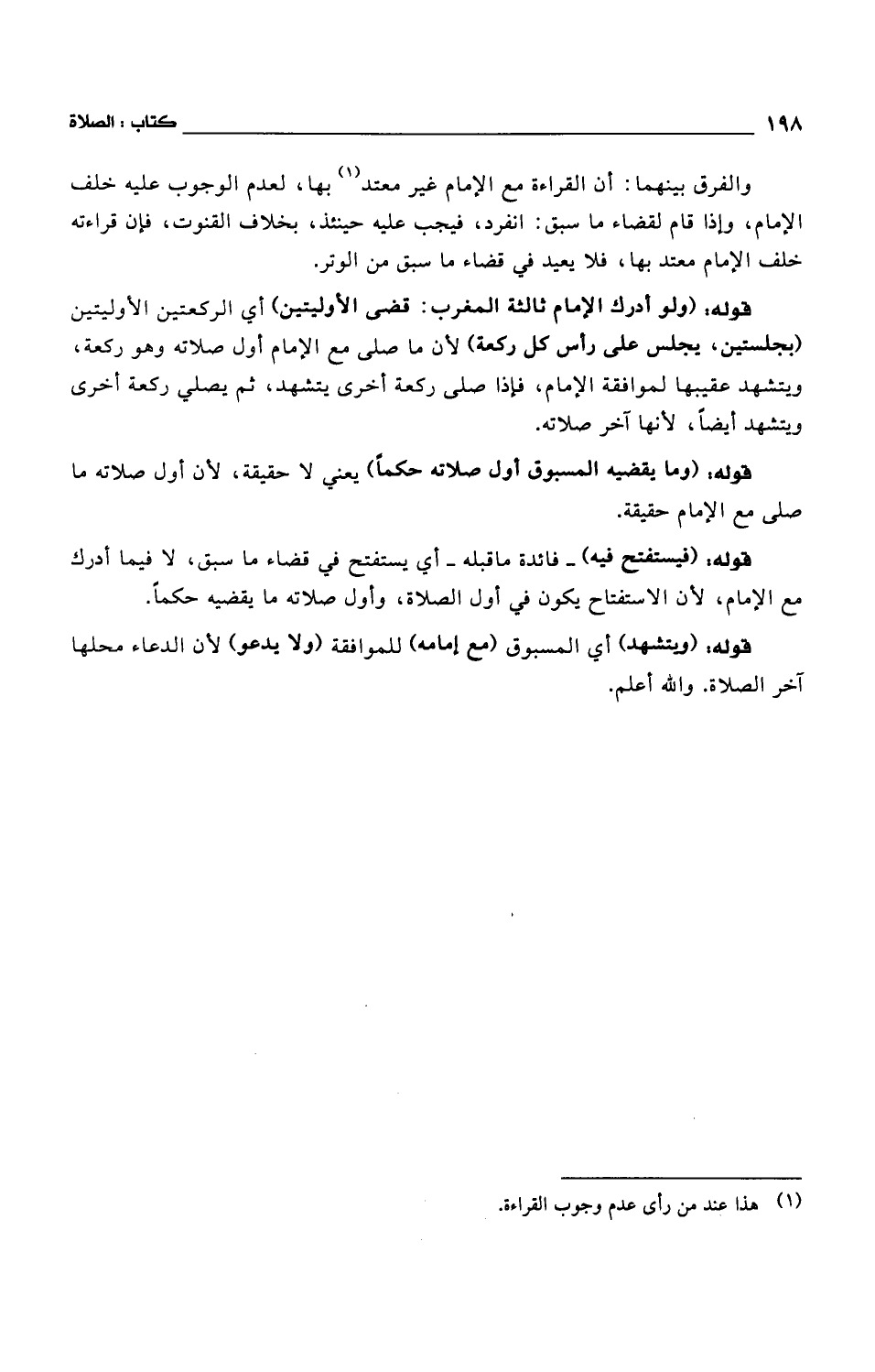 والفرق بينهما: أن القراءة مع الإمام غير معتد بها، لعدم الوجوب عليه خلف الإمام، وإذا قام لقضاء ما سبق: انفرد، فيجب عليه حينئذ، بخلاف القنوت، فإن قراءته خلف الإمام معتد بها، فلا يعيد في قضاء ما سبق من الوتر.