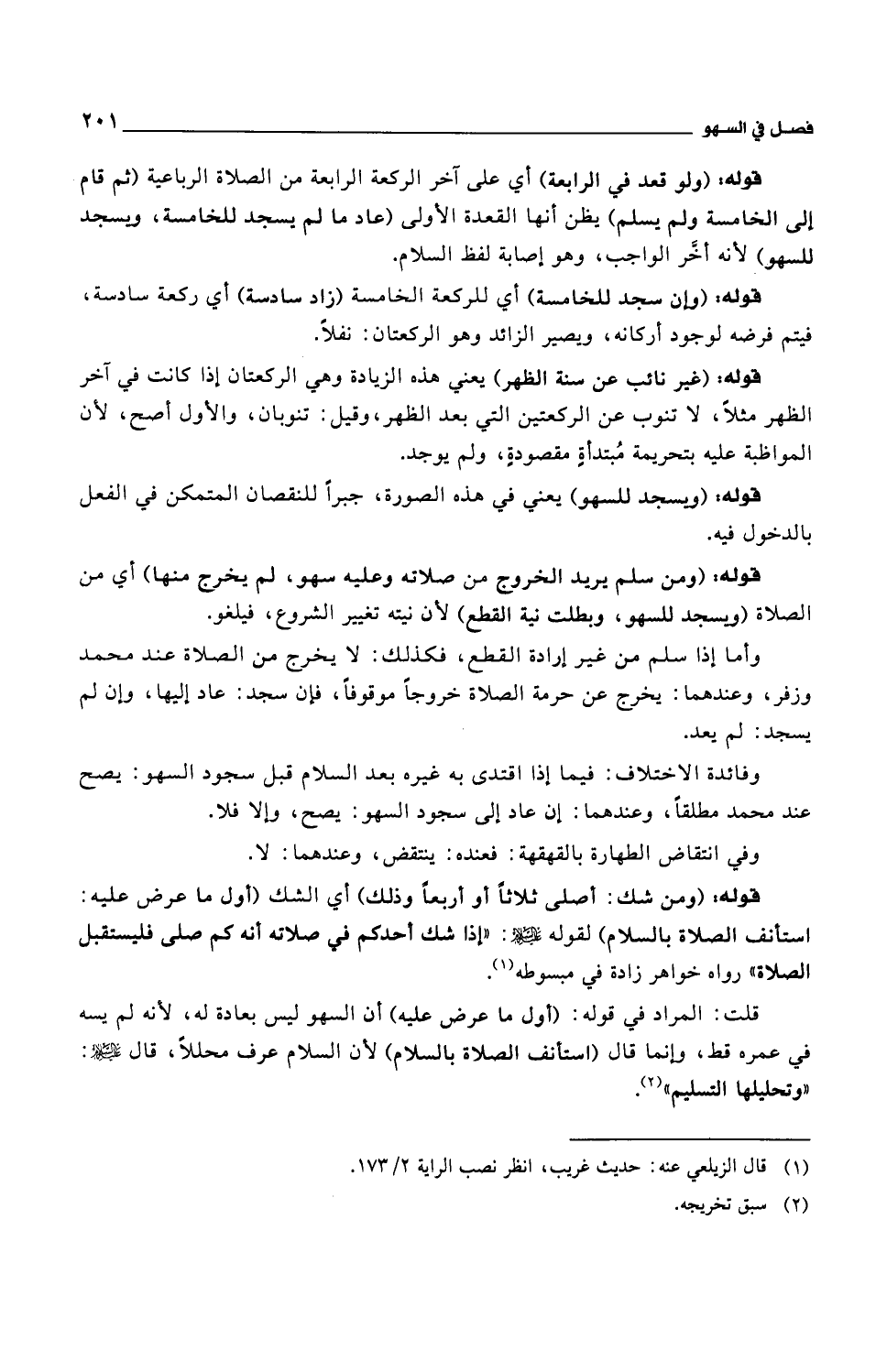 قلت: المراد في قوله: (أول ما عرض عليه) أن السهو ليس بعادة له، لأنه لم يسه في عمره قط، وإنما قال (استأنف الصلاة بالسلام) لأن السلام عرف محللاً، قال عليه السلام: "وتحليلها التسليم".