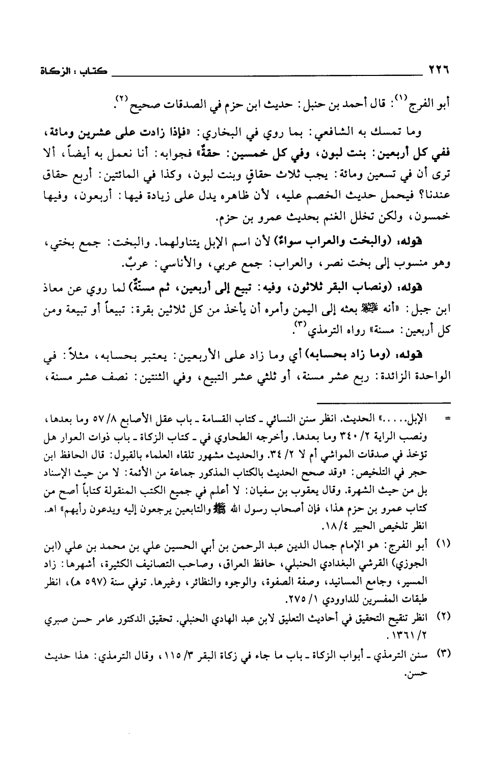 أبو الفرج: قال أحمد بن حنبل: حديث ابن حزم في الصدقات صحيح.