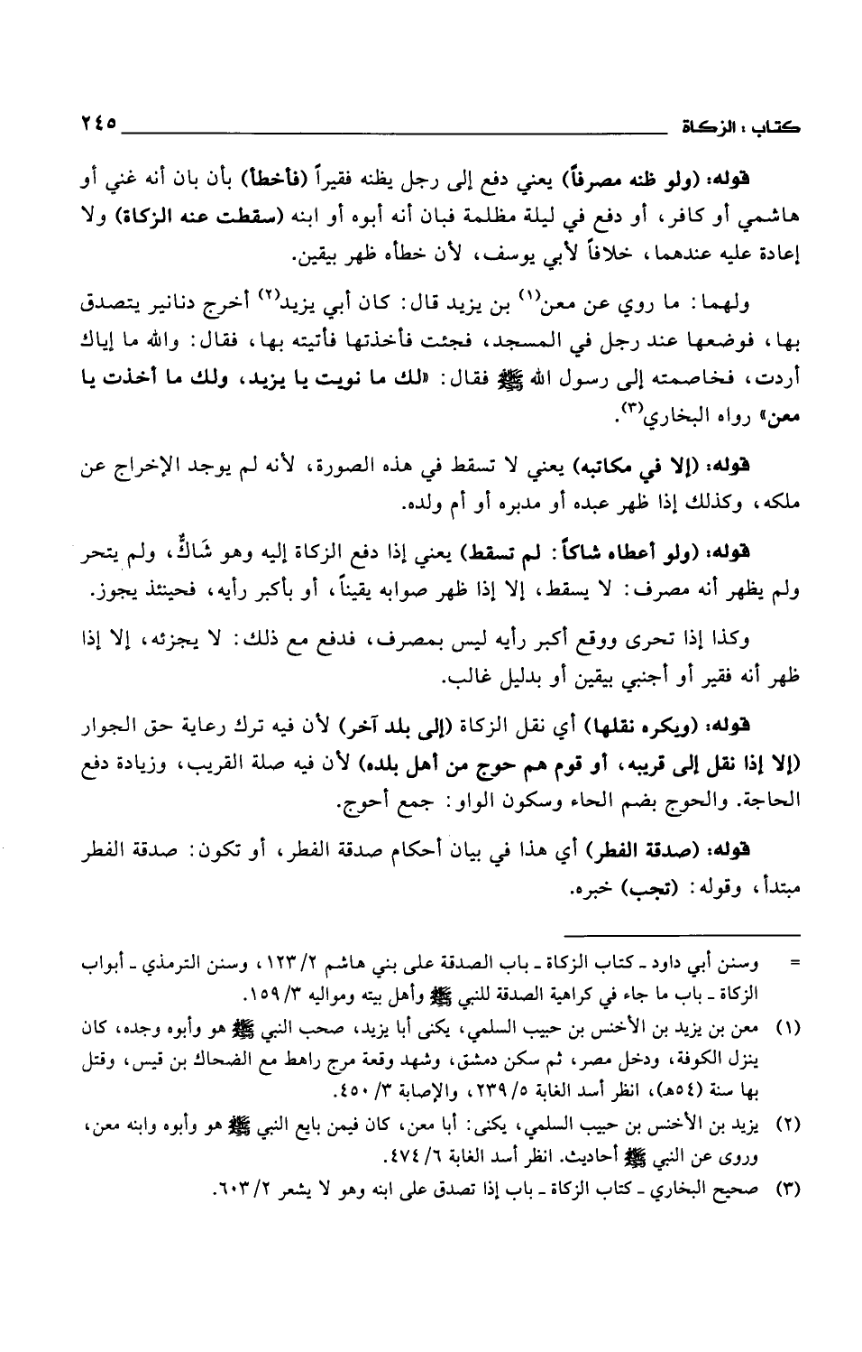 قوله: (ولو ظنه مصرفاً) يعني دفع إلى رجل يظنه فقيراً (فأخطأ) بأن بان أنه غني أو هاشمي أو كافر، أو دفع في ليلة مظلمة فبان أنه أبوه أو ابنه (سقطت عنه الزكاة) ولا إعادة عليه عندهما، خلافاً لأبي يوسف، لأن خطأه ظهر بيقين.