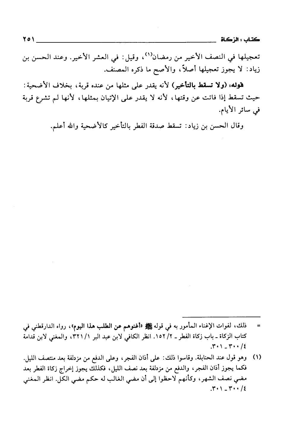 وقال الحسن بن زياد: تسقط صدقة الفطر بالتأخير كالأضحية والله أعلم.