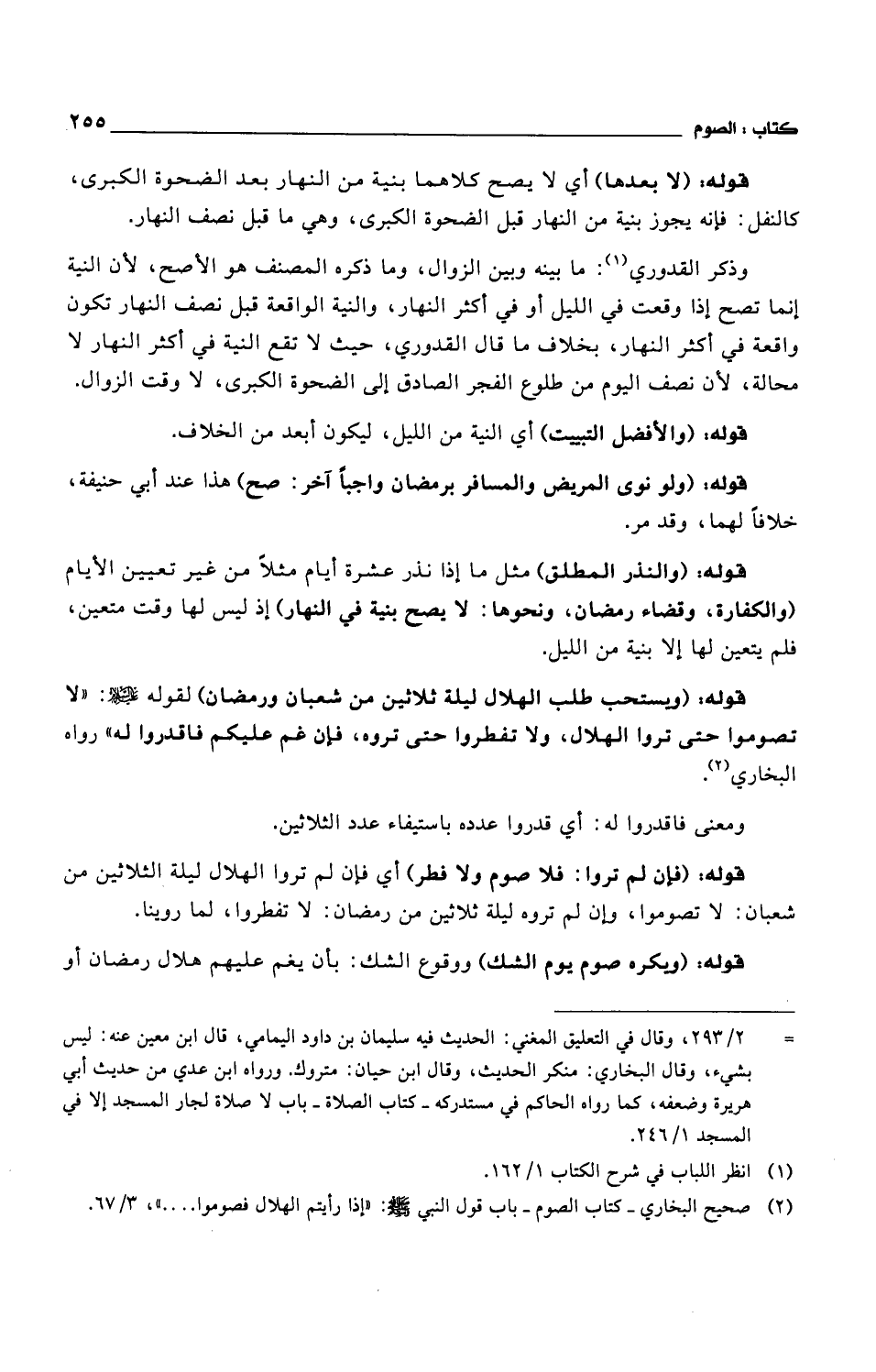 قوله: (لا بعدها) أي لا يصح كلاهما بنية من النهار بعد الضحوة الكبرى، كالنفل: فإنه يجوز بنية من النهار قبل الضحوة الكبرى، وهي ما قبل نصف النهار.