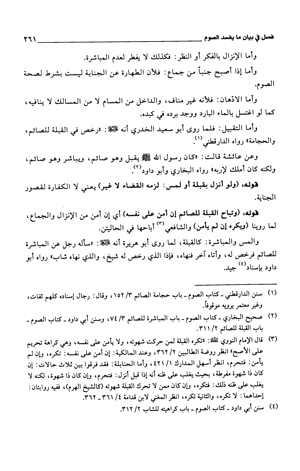 وعن عائشة قالت: "كان رسول الله صلى الله عليه وسلم يقبل وهو صائم، ويباشر وهو صائم، ولكنه كان أملك لإربه" رواه البخاري وأبو داود.