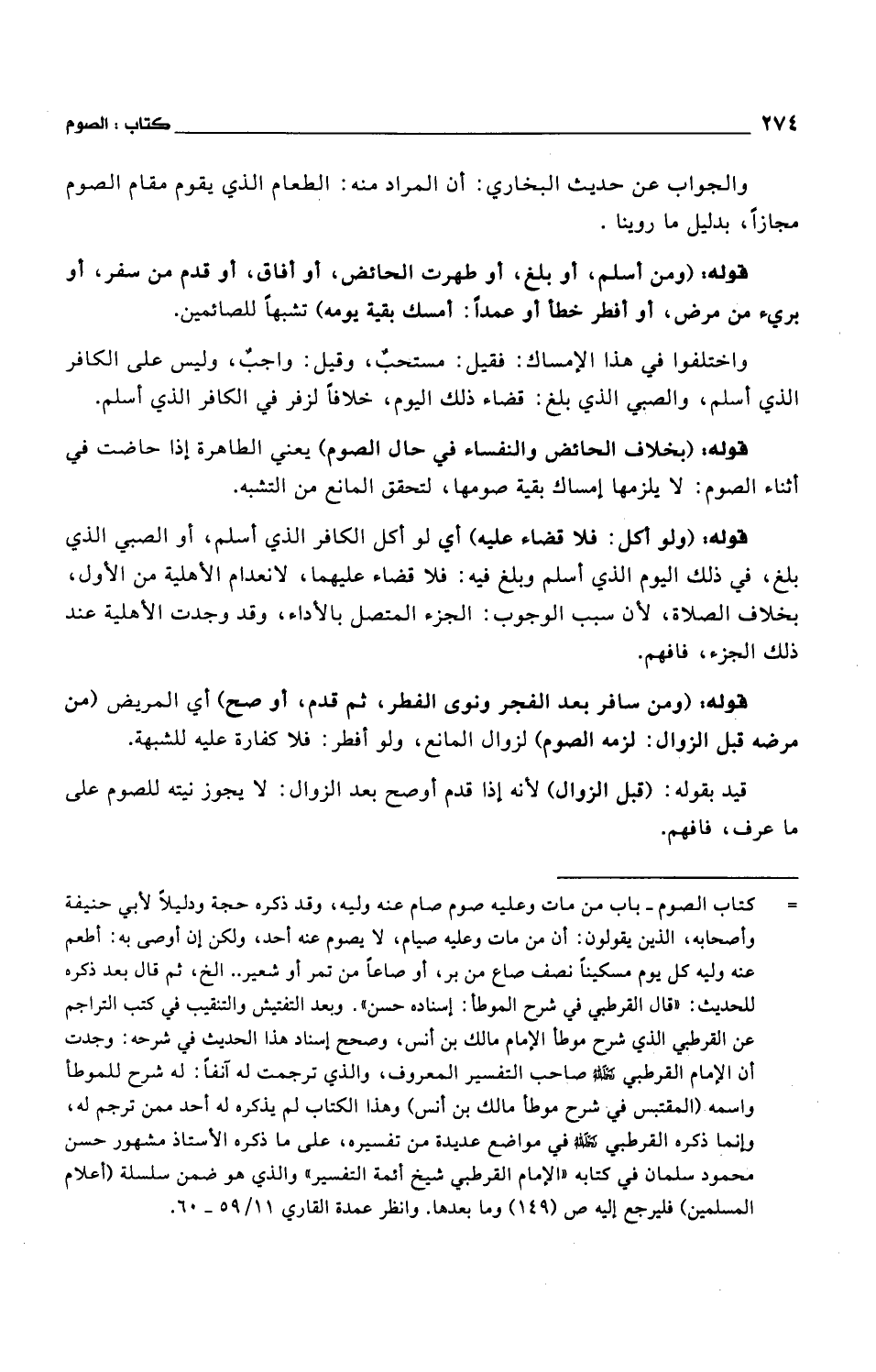 قوله: (ومن أسلم، أو بلغ، أو طهرت الحائض، أو أفاق، أو قدم من سفر، أو بريء من مرض، أو أفطر خطأ أو عمداً: أمسك بقية يومه) تشبهاً للصائمين.