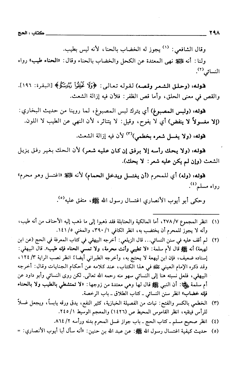 ولنا: أنه عليه السلام نهى المعتدة عن الكحل والخضاب بالحناء وقال: "الحناء طيب" رواه النسائي.