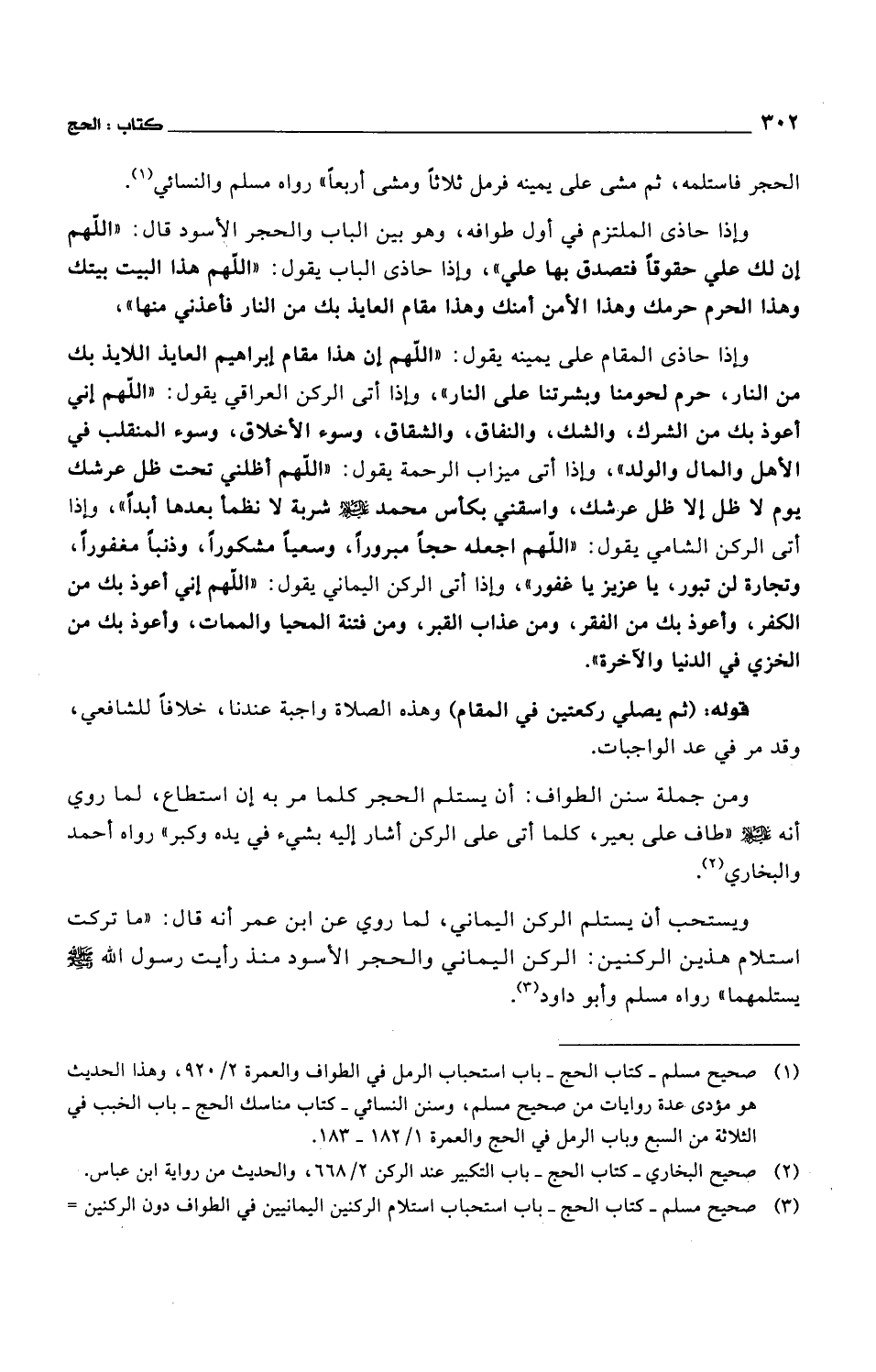 وإذا حاذى المقام على يمينه يقول: "اللهم إن هذا مقام إبراهيم العايذ اللايذ بك من النار، حرم لحومنا وبشرتنا على النار"، وإذا أتى الركن العراقي يقول: "اللهم إني أعوذ بك من الشرك، والشك، والنفاق، والشقاق، وسوء الأخلاق، وسوء المنقلب في الأهل والمال والولد"، وإذا أتى ميزاب الرحمة يقول: "اللهم أظلني تحت ظل عرشك يوم لا ظل إلا ظل عرشك، واسقني بكأس محمد عليه السلام شربة لا نظمأ بعدها أبداً"، وإذا أتى الركن الشامي يقول: "اللهم اجعله حجاً مبروراً، وسعياً مشكوراً، وذنباً مغفوراً، وتجارة لن تبور، يا عزيز يا غفور"، وإذا أتى الركن اليماني يقول: "اللهم إني أعوذ بك من الكفر، وأعوذ بك من الفقر، ومن عذاب القبر، ومن فتنة المحيا والممات، وأعوذ بك من الخزي في الدنيا والآخرة".