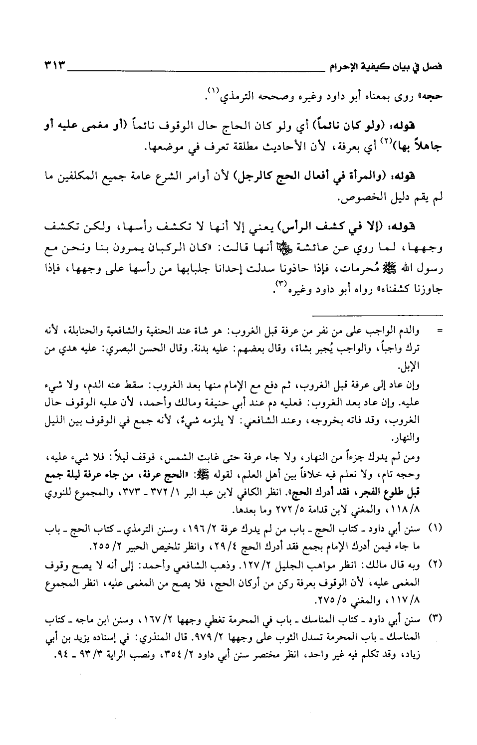 قوله: (ولو كان نائماً) أي ولو كان الحاج حال الوقوف نائماً (أو مغمى عليه أو جاهلاً بها) أي بعرفة، لأن الأحاديث مطلقة تعرف في موضعها.