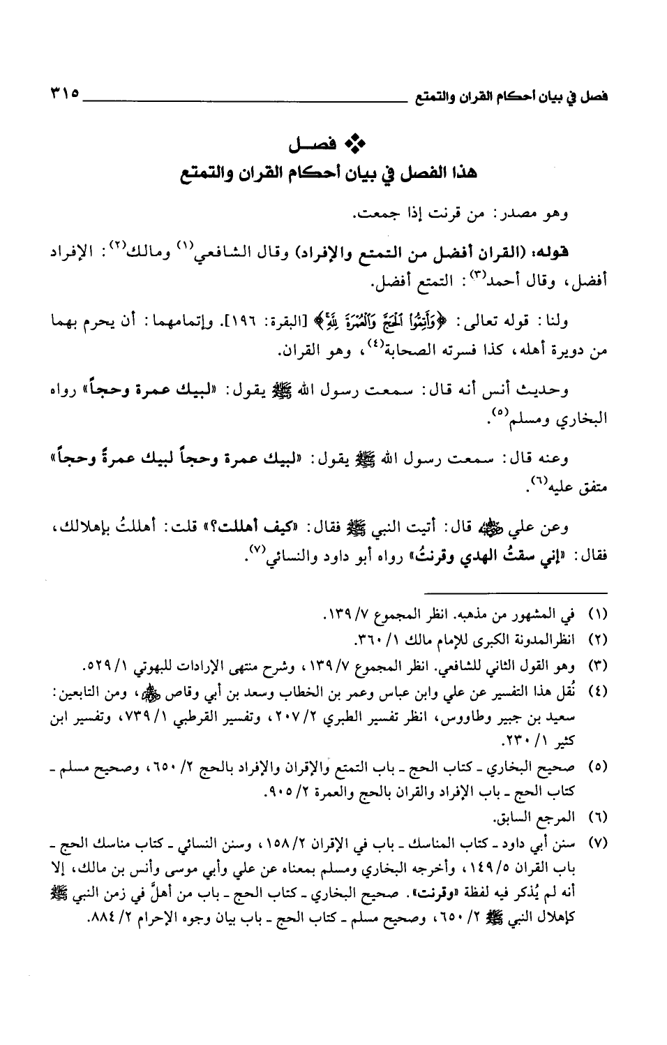 قوله: (القران أفضل من التمتع والإفراد) وقال الشافعي ومالك: الإفراد أفضل، وقال أحمد: التمتع أفضل.