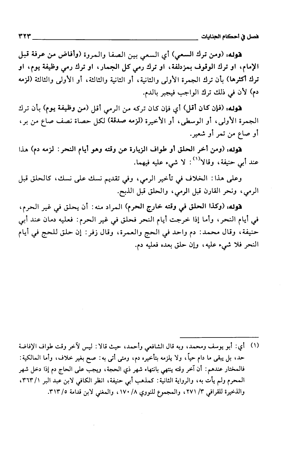 قوله: (ومن أخر الحلق أو طواف الزيارة عن وقته وهو أيام النحر: لزمه دم) هذا عند أبي حنيفة، وقالا: لا شيء عليه فيهما.
