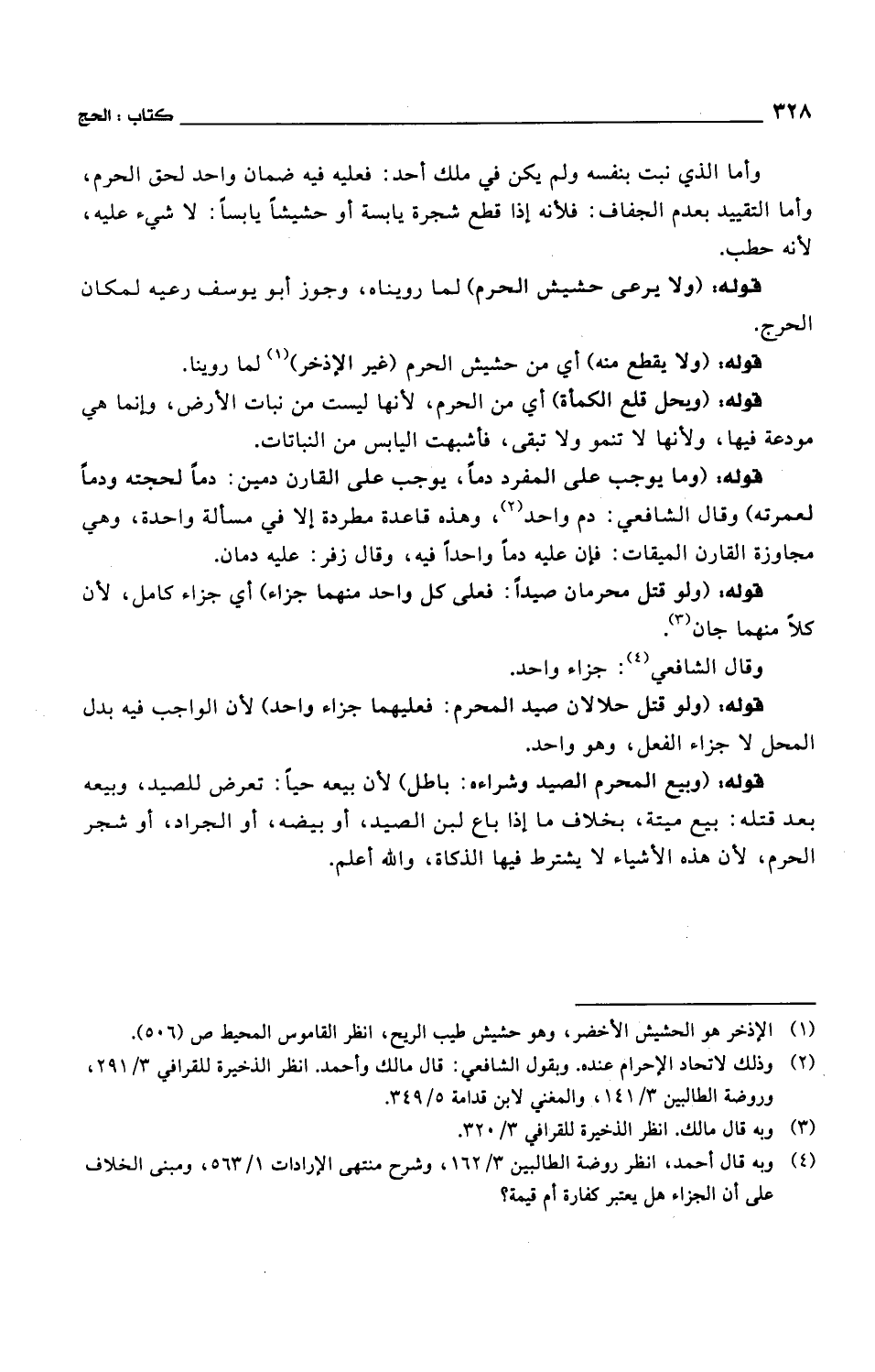 وأما الذي نبت بنفسه ولم يكن في ملك أحد: فعليه فيه ضمان واحد لحق الحرم، وأما التقييد بعدم الجفاف: فلأنه إذا قطع شجرة يابسة أو حشيشاً يابساً: لا شيء عليه، لأنه حطب.