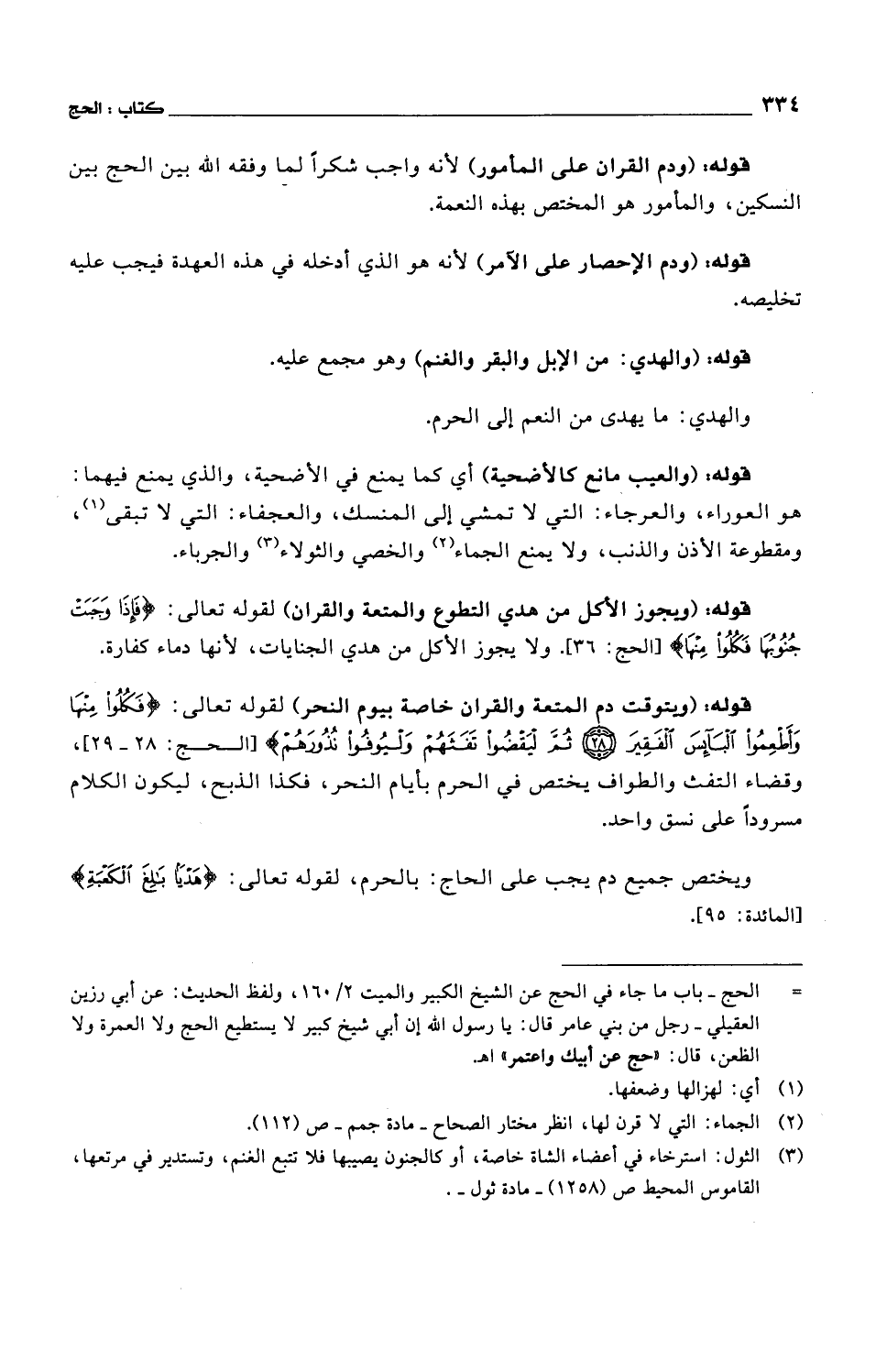 قوله: (ودم القران على المأمور) لأنه واجب شكراً لما وفقه الله بين الحج بين النسكين، والمأمور هو المختص بهذه النعمة.