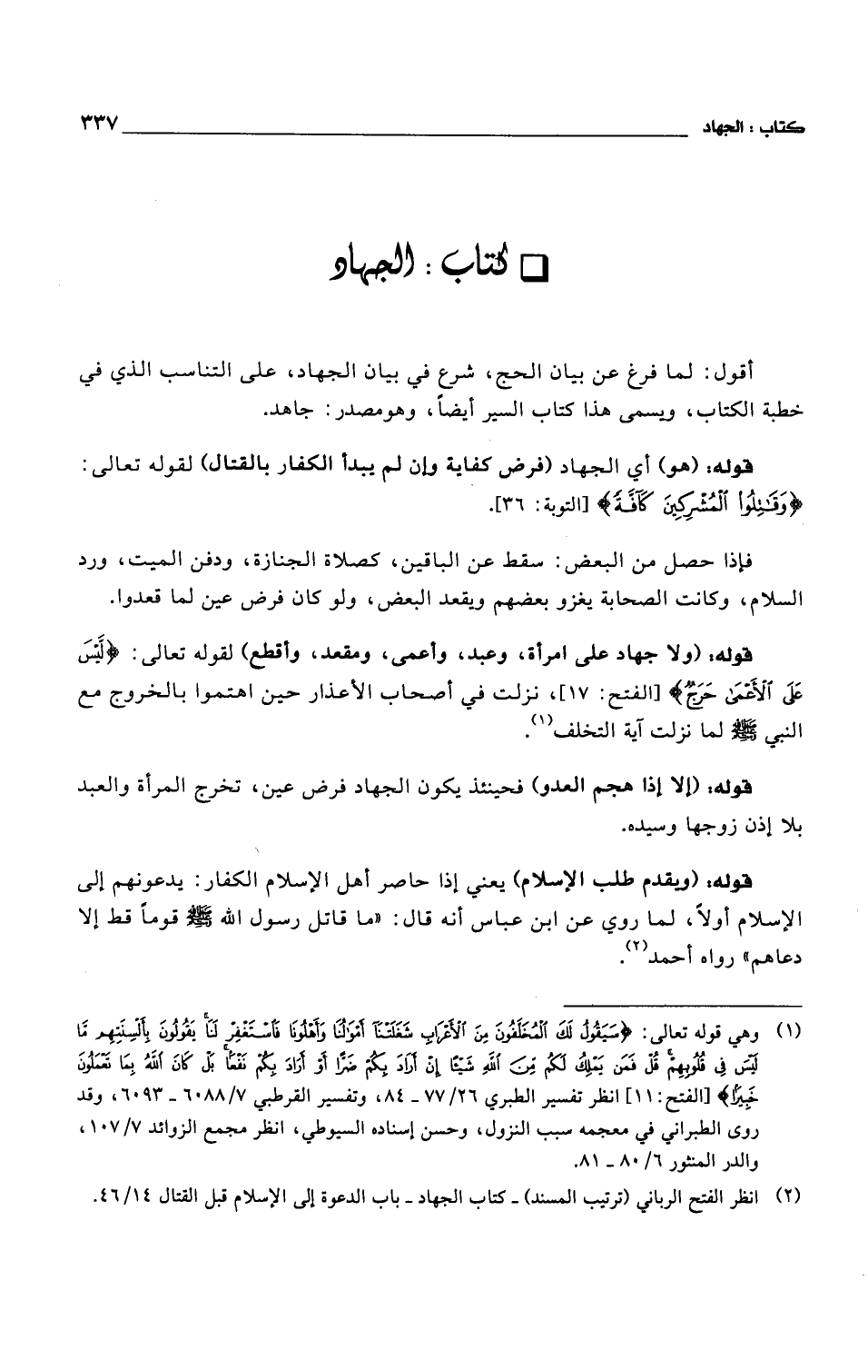 أقول: لما فرغ عن بيان الحج، شرع في بيان الجهاد، على التناسب الذي في خطبة الكتاب، ويسمى هذا كتاب السير أيضاً، وهو مصدر: جاهد.