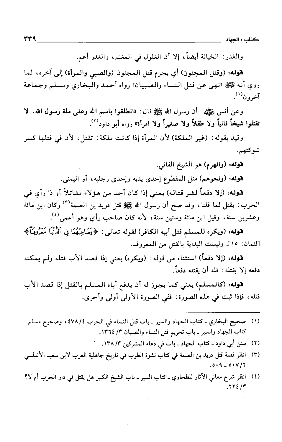 وعن أنس رضي الله عنه: أن رسول الله صلى الله عليه وسلم قال: "انطلقوا باسم الله وعلى ملة رسول الله، لا تقتلوا شيخاً فانياً ولا طفلاً ولا صغيراً ولا امرأة" رواه أبو داود.