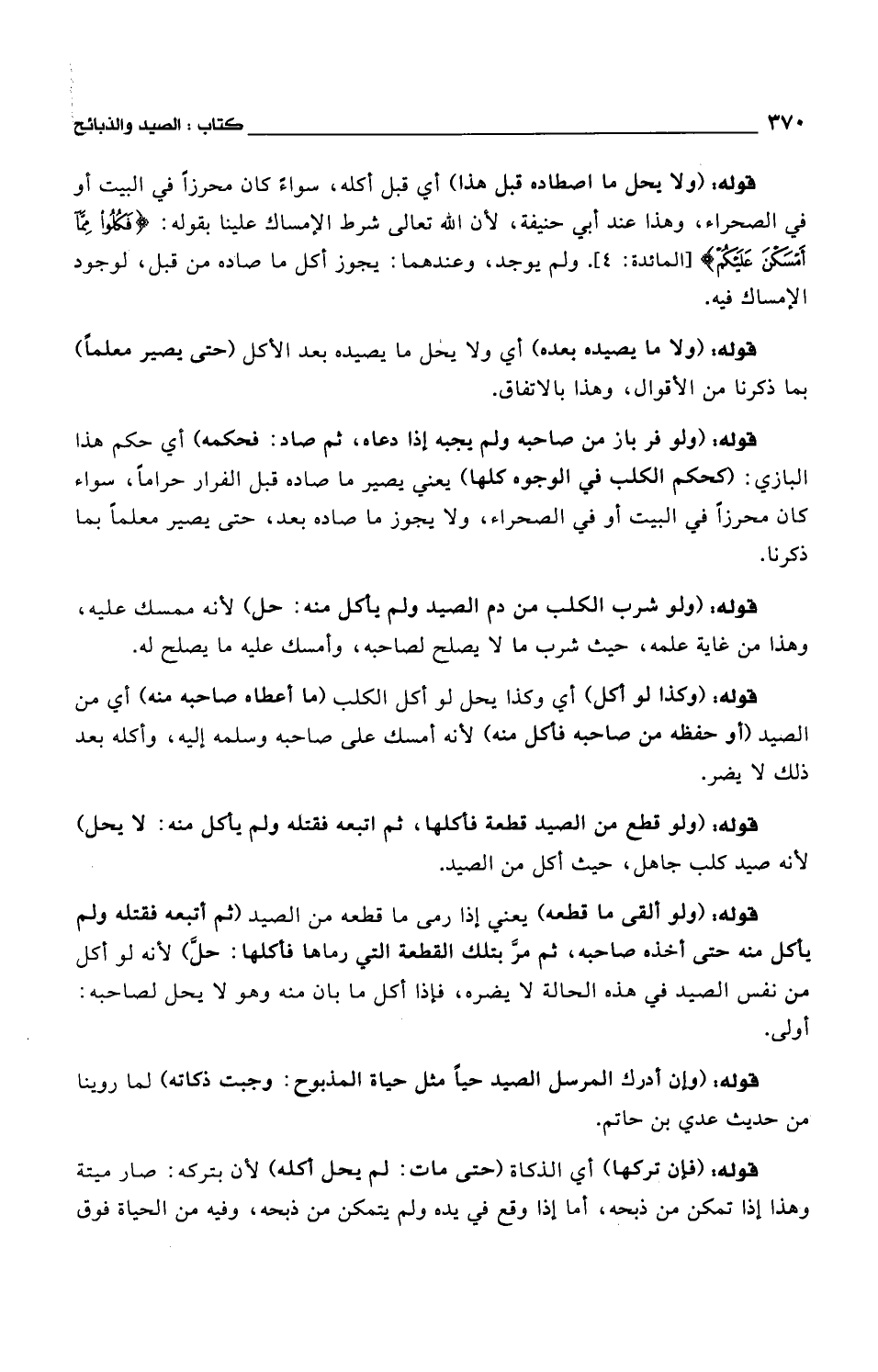 قوله: (وإن أدرك المرسل الصيد حياً مثل حياة المذبوح: وجبت ذكاته) لما روينا من حديث عدي بن حاتم.
