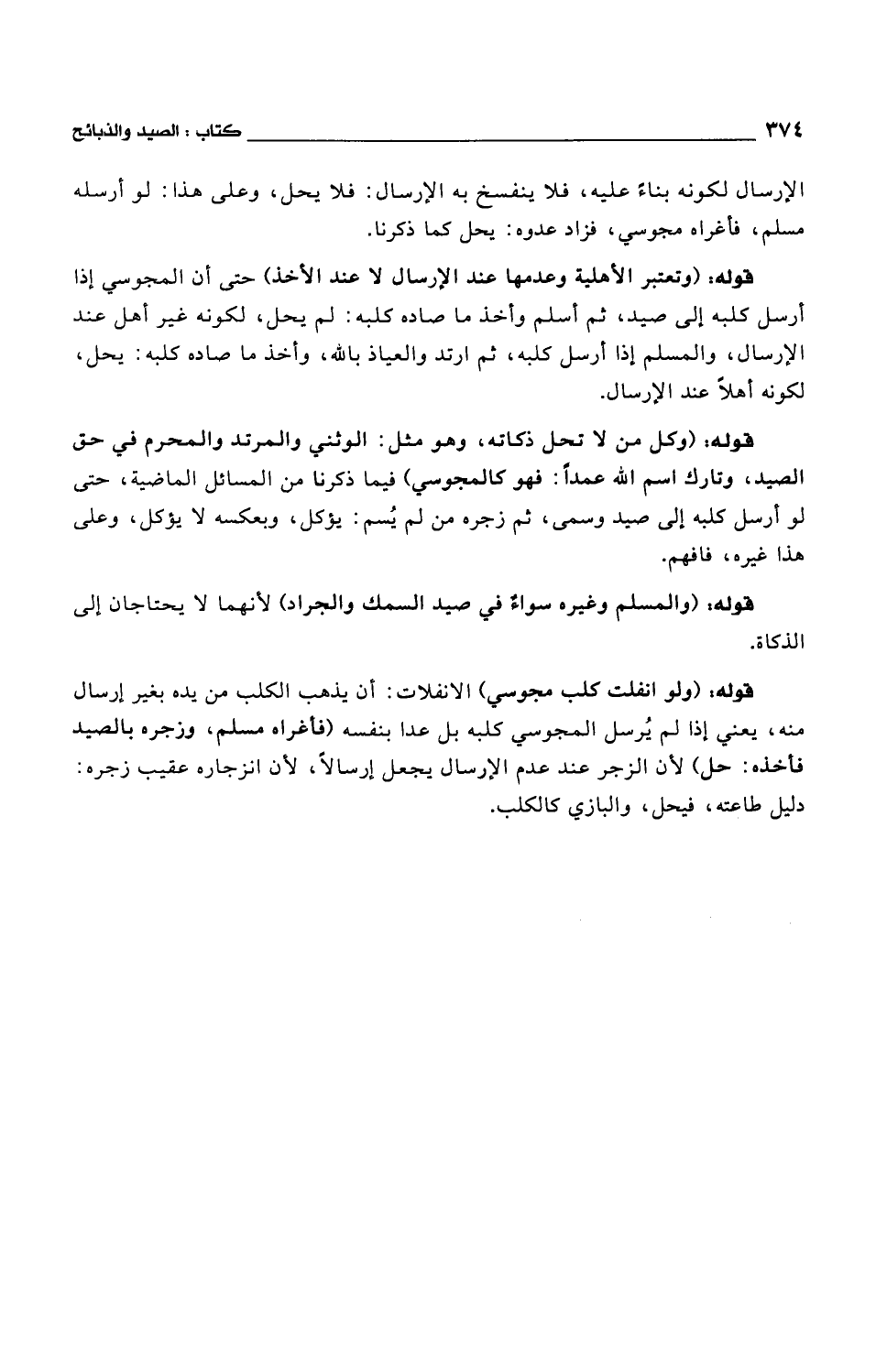 قوله: (وتعتبر الأهلية وعدمها عند الإرسال لا عند الأخذ) حتى أن المجوسي إذا أرسل كلبه إلى صيد، ثم أسلم وأخذ ما صاده كلبه: لم يحل، لكونه غير أهل عند الإرسال، والمسلم إذا أرسل كلبه، ثم ارتد والعياذ بالله، وأخذ ما صاده كلبه: يحل، لكونه أهلاً عند الإرسال.