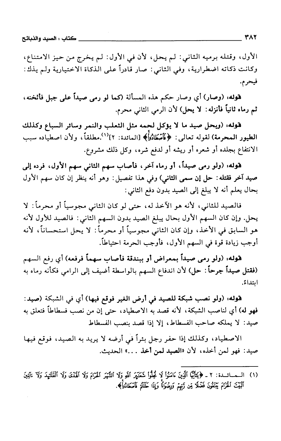 قوله: (وصار) أي وصار حكم هذه المسألة (كما لو رمى صيداً على جبل فأثخنه، ثم رماه ثانياً فأنزله: لا يحل) لأن الرمي الثاني محرم.