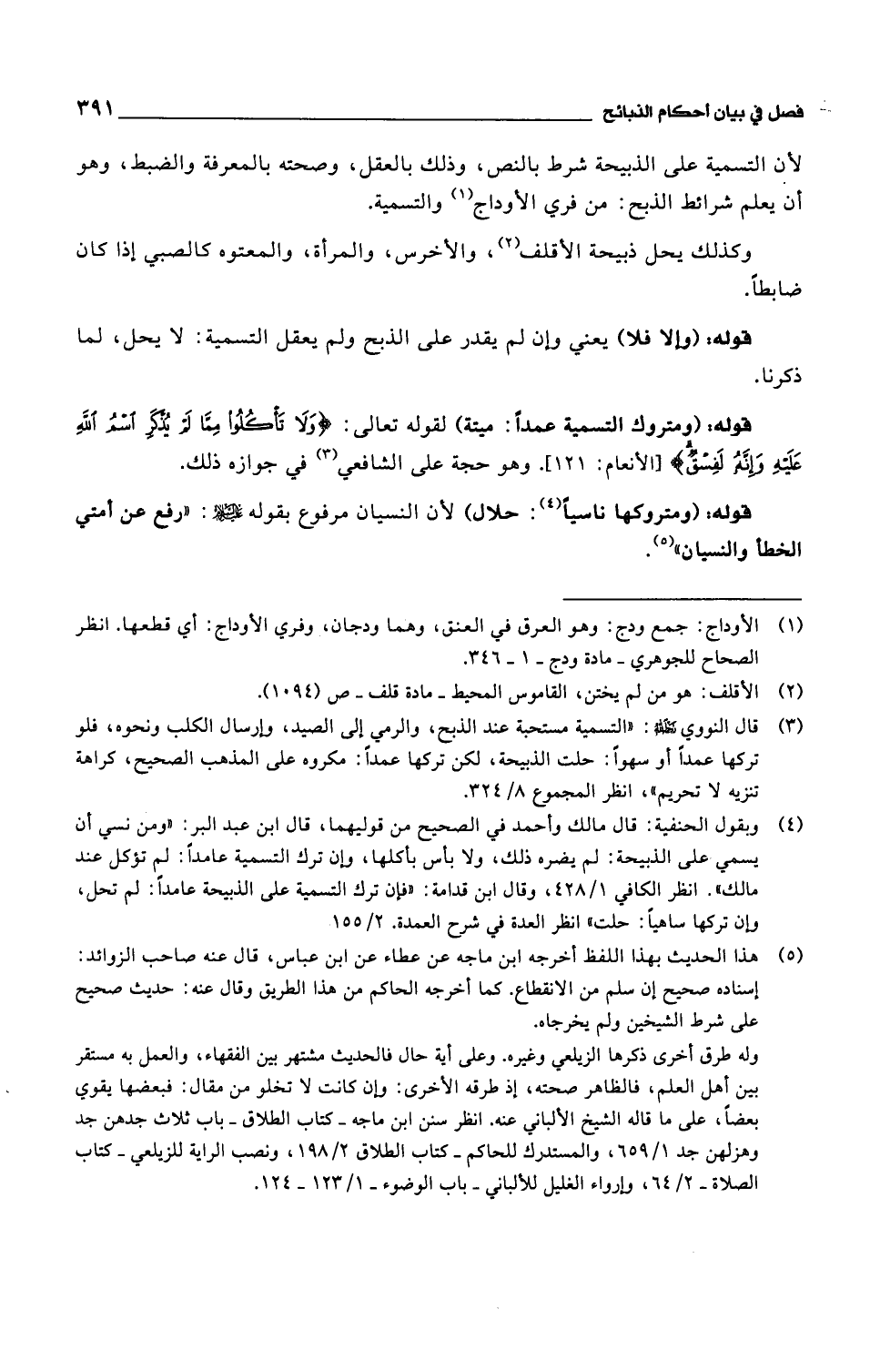 قوله: (ومتروكها ناسياً: حلال) لأن النسيان مرفوع بقوله عليه السلام: "رفع عن أمتي الخطأ والنسيان".