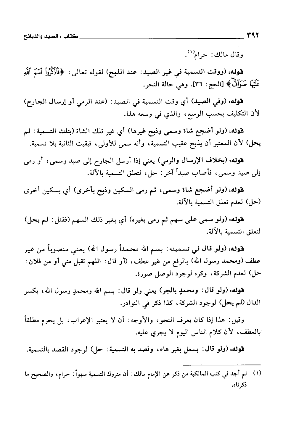قوله: (ولو قال: ومحمد بالجر) يعني ولو قال: بسم الله ومحمد رسول الله، بكسر الدال (لم يحل) لوجود الشركة، كذا ذكر في النوادر.
