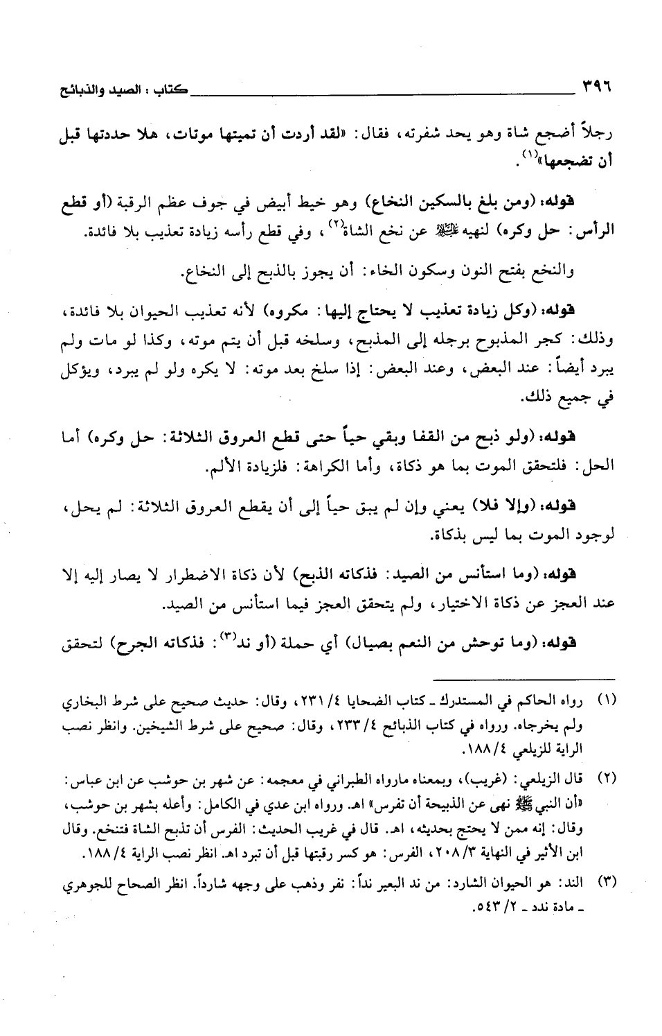 قوله: (وكل زيادة تعذيب لا يحتاج إليها: مكروه) لأنه تعذيب الحيوان بلا فائدة، وذلك: كجر المذبوح برجله إلى المذبح، وسلخه قبل أن يتم موته، وكذا لو مات ولم يبرد أيضاً: عند البعض، وعند البعض: إذا سلخ بعد موته: لا يكره ولو لم يبرد، ويؤكل في جميع ذلك.