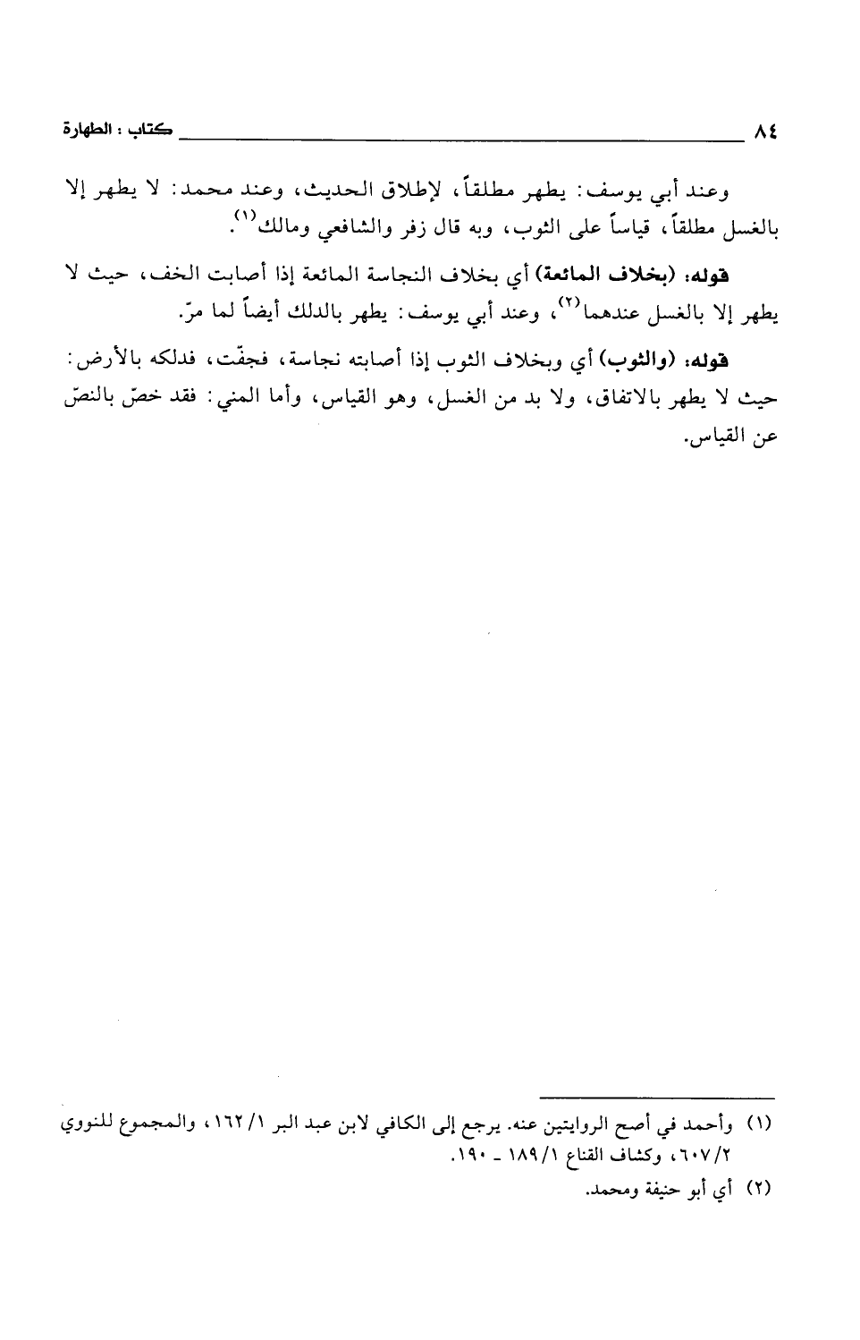 قوله: (بخلاف المائعة) أي بخلاف النجاسة المائعة إذا أصابت الخف، حيث لا يطهر إلا بالغسل عندهما، وعند أبي يوسف: يطهر بالدلك أيضاً لما مر.