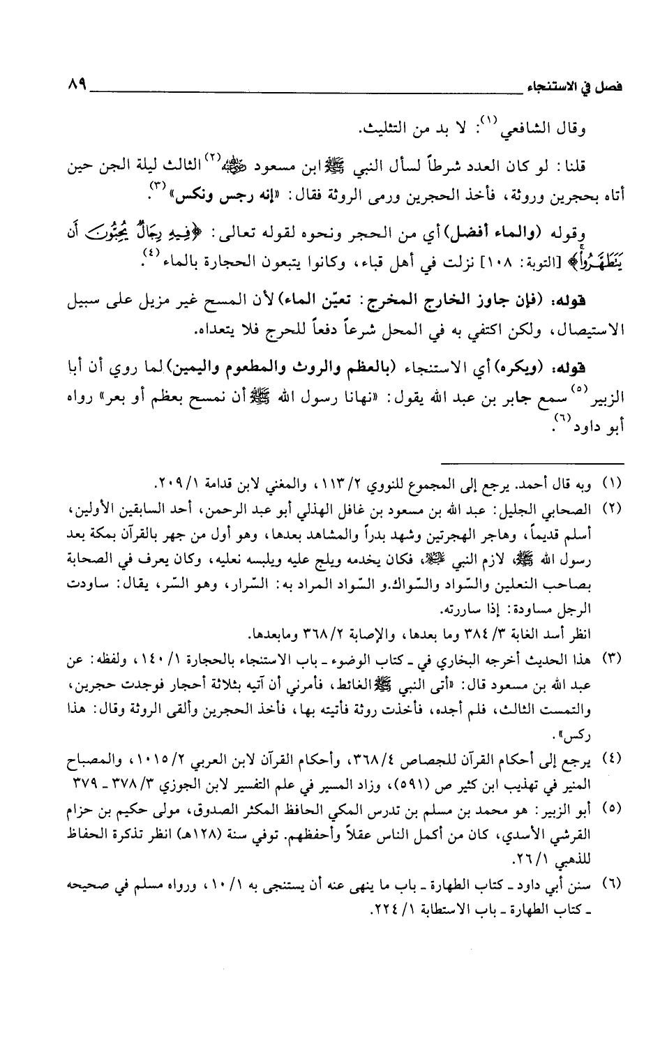 قلنا: لو كان العدد شرطاً لسأل النبي صلى الله عليه وسلم ابن مسعود رضي الله عنه الثالث ليلة الجن حين أتاه بحجرين وروثة، فأخذ الحجرين ورمى الروثة فقال: "إنه رجس ونكس".