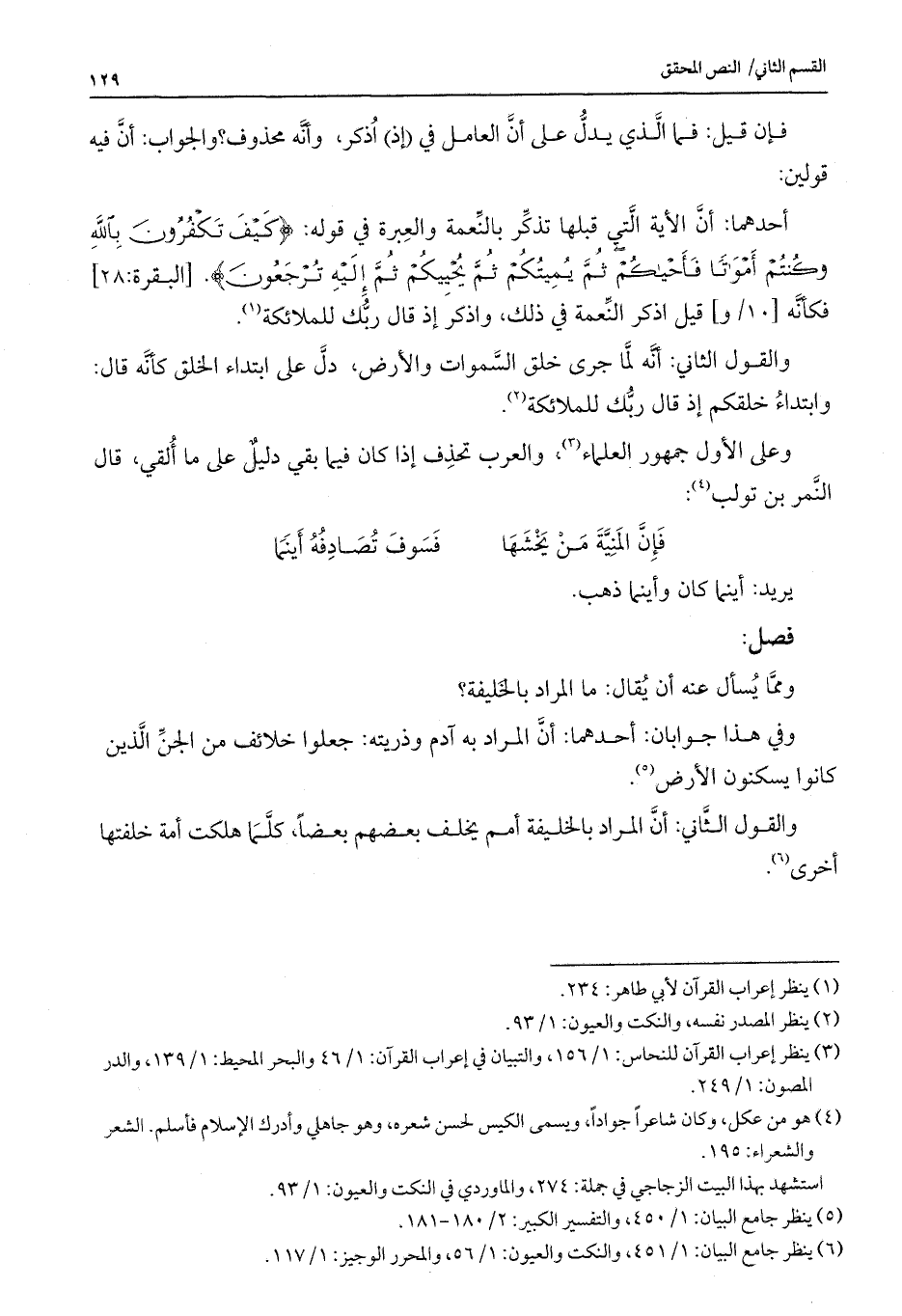 وعلى الأول جمهور العلماء، والعرب تحذف إذا كان فيما بقى دليل على ما ألقي، قال النمر بن تولب: