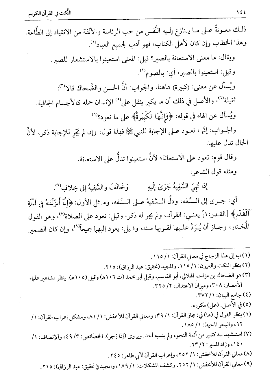 أي: جرى إلى السفه، ودل السفيه على السفه، ومثل الأول: {إِنَّا أَنْزَلْنَاهُ فِي لَيْلَةِ الْقَدْرِ} [القدر: 1] يعني: القرآن، ولم يجر له ذكر، وقيل: تعود على الصلاة، وهو القول المختار، وجاز أن يرد عليها لقربها منه، وقيل: يعود إليهما جميعاً، وإن كان الضمير