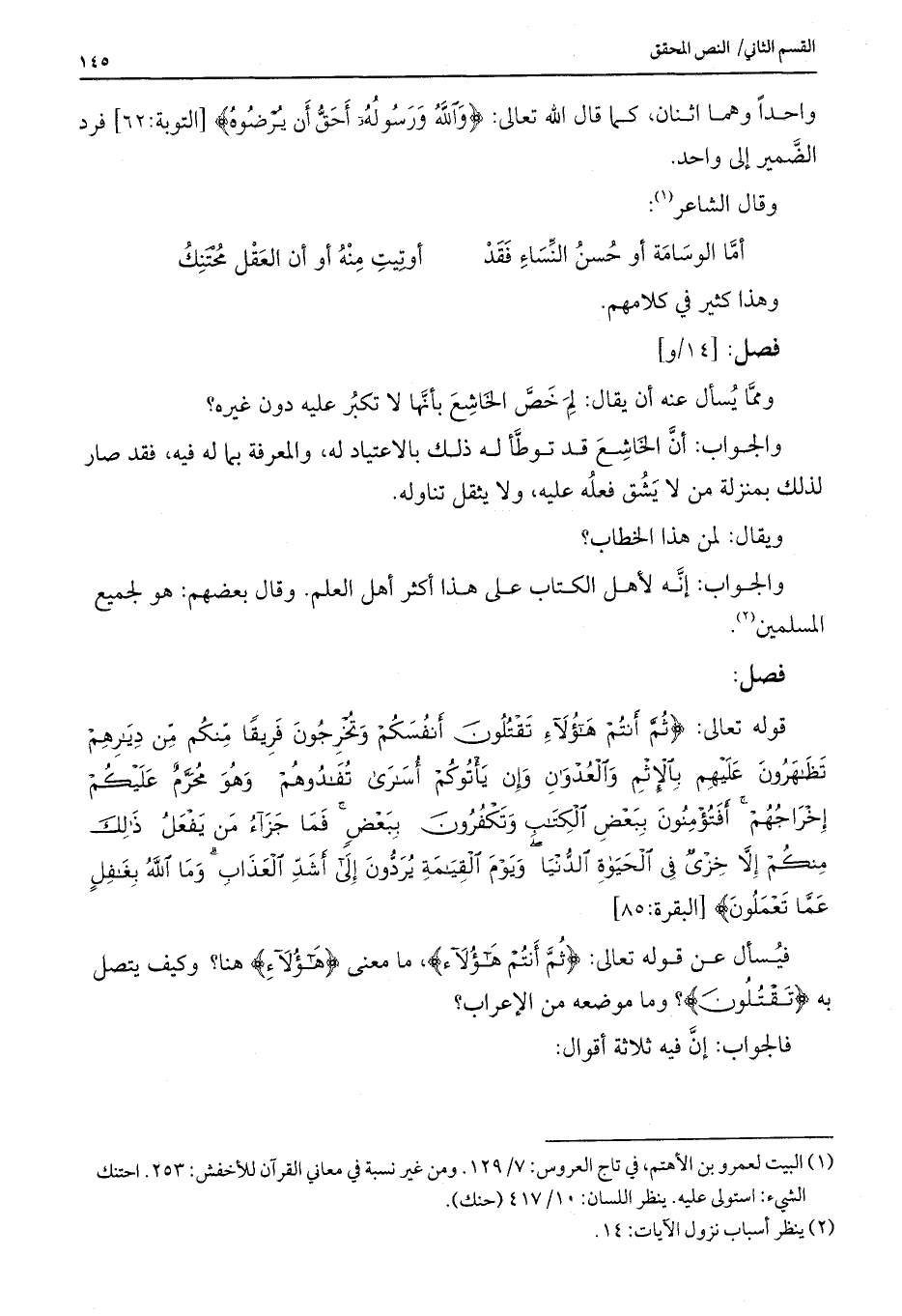 فيُسأل عن قوله تعالى: {ثُمَّ أَنْتُمْ هَؤُلَاءِ} ، ما معنى {هَؤُلَاءِ} هنا؟ وكيف يتصل به {تَقْتُلُونَ} ؟ وما موضعه من الإعراب؟