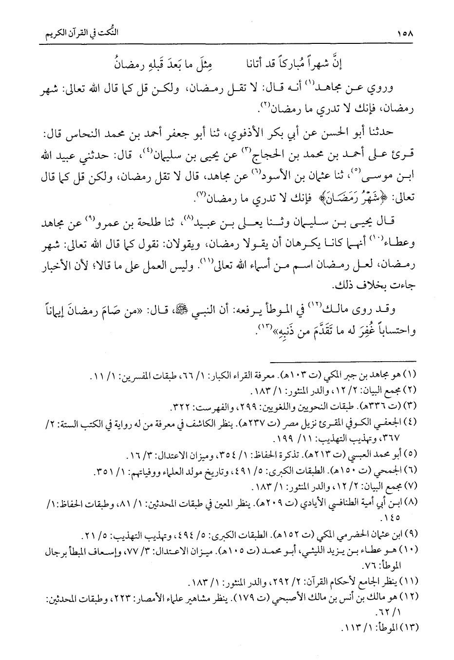 قرئ علي أحمد بن محمد بن الحجاج عن يحيي بن سليمان، قال: حدثني عبيد الله ابن موسى، ثنا عثمان بن الأسود عن مجاهد، قال لا تقل رمضان، ولكن قل كما قال تعالى: {شَهْرُ رَمَضَانَ} فإنك لا تدري ما رمضان.