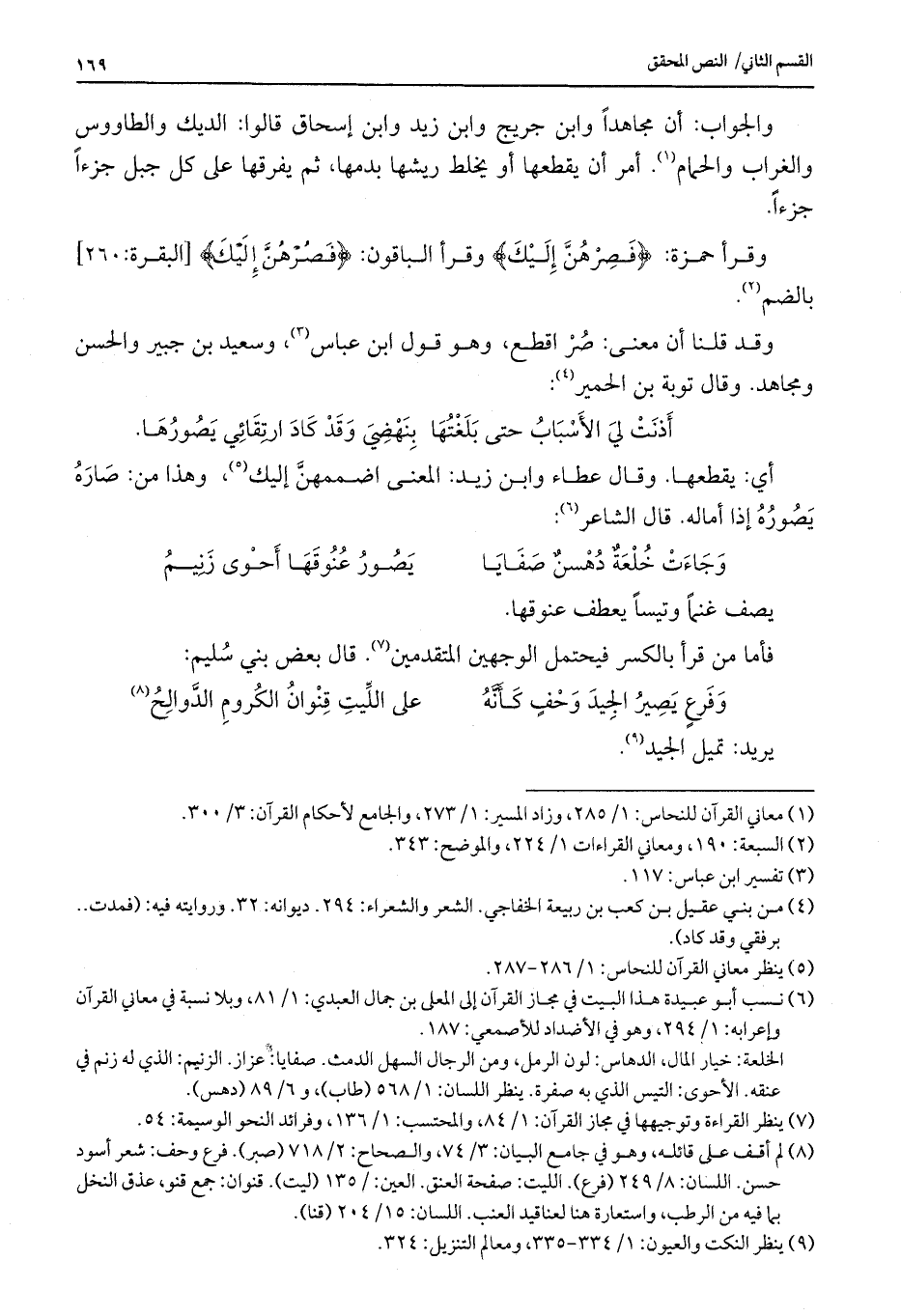 وقد قلنا أن معنى: صر اقطع، وهو قول ابن عباس، وسعيد بن جبير والحسن ومجاهد. وقال توبة بن الحمير.