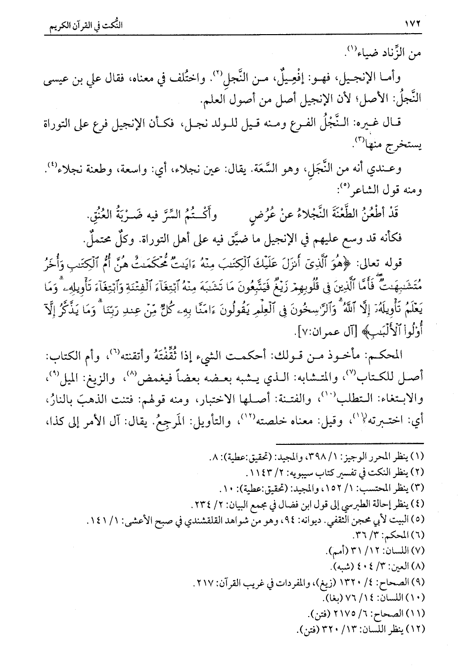 وأما الإنجيل، فهو: إفْعيلٌ، من النجلِ. واختلف في معناه، فقال علي بن عيسى النجلُ: الأصل؛ لأن الإنجيل أصل من أصول العلم.