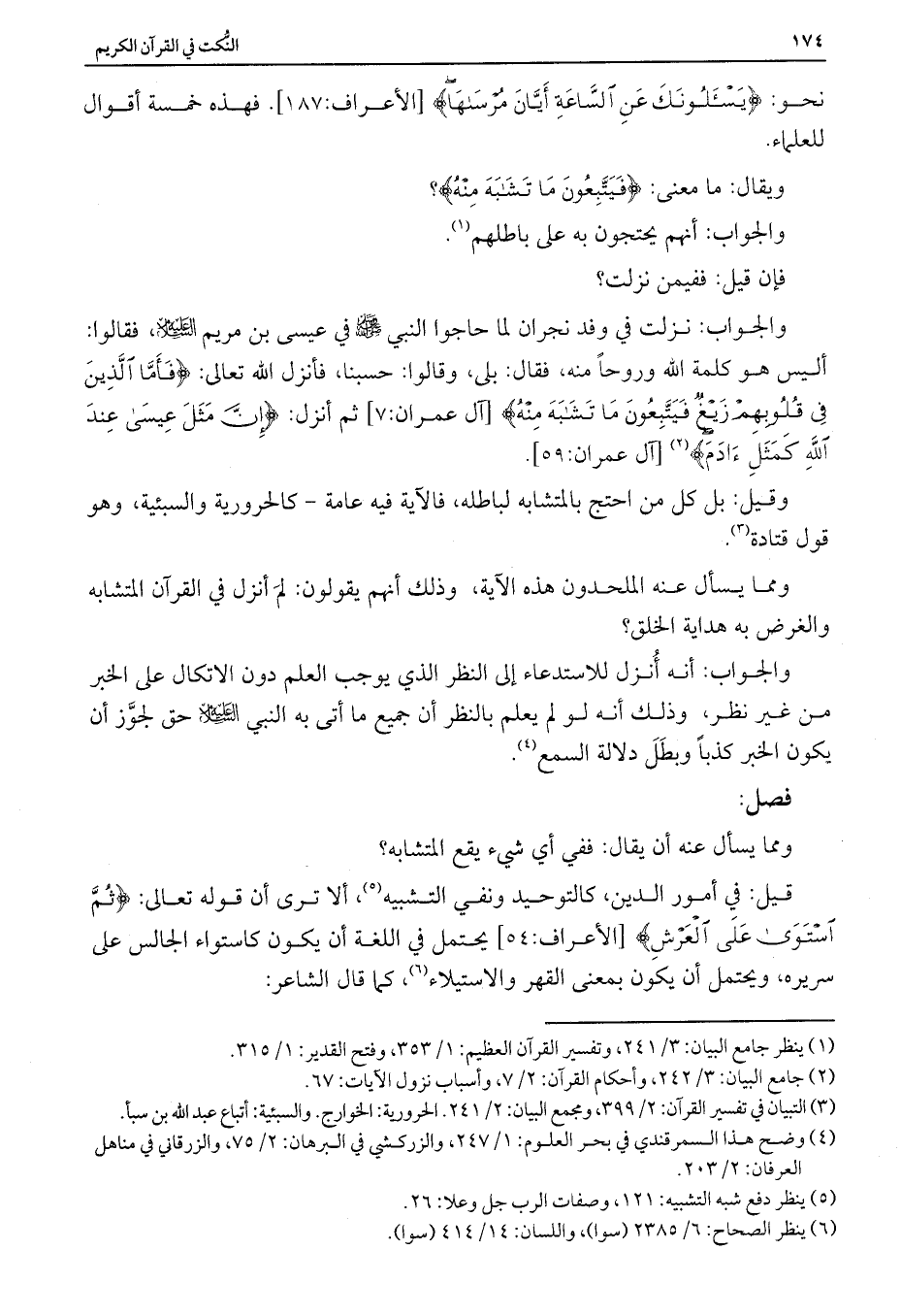 ومما يسأل عنه أن يقال: ففي أي شيء يقع المتشابه؟