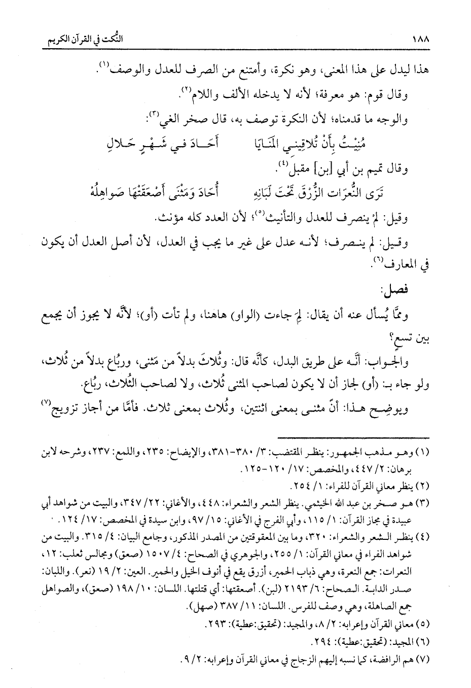 وقيل: لم ينصرف؛ لأنه عدل على غير ما يجب في العدل، لأن أصل العدل أن يكون في المعارف.