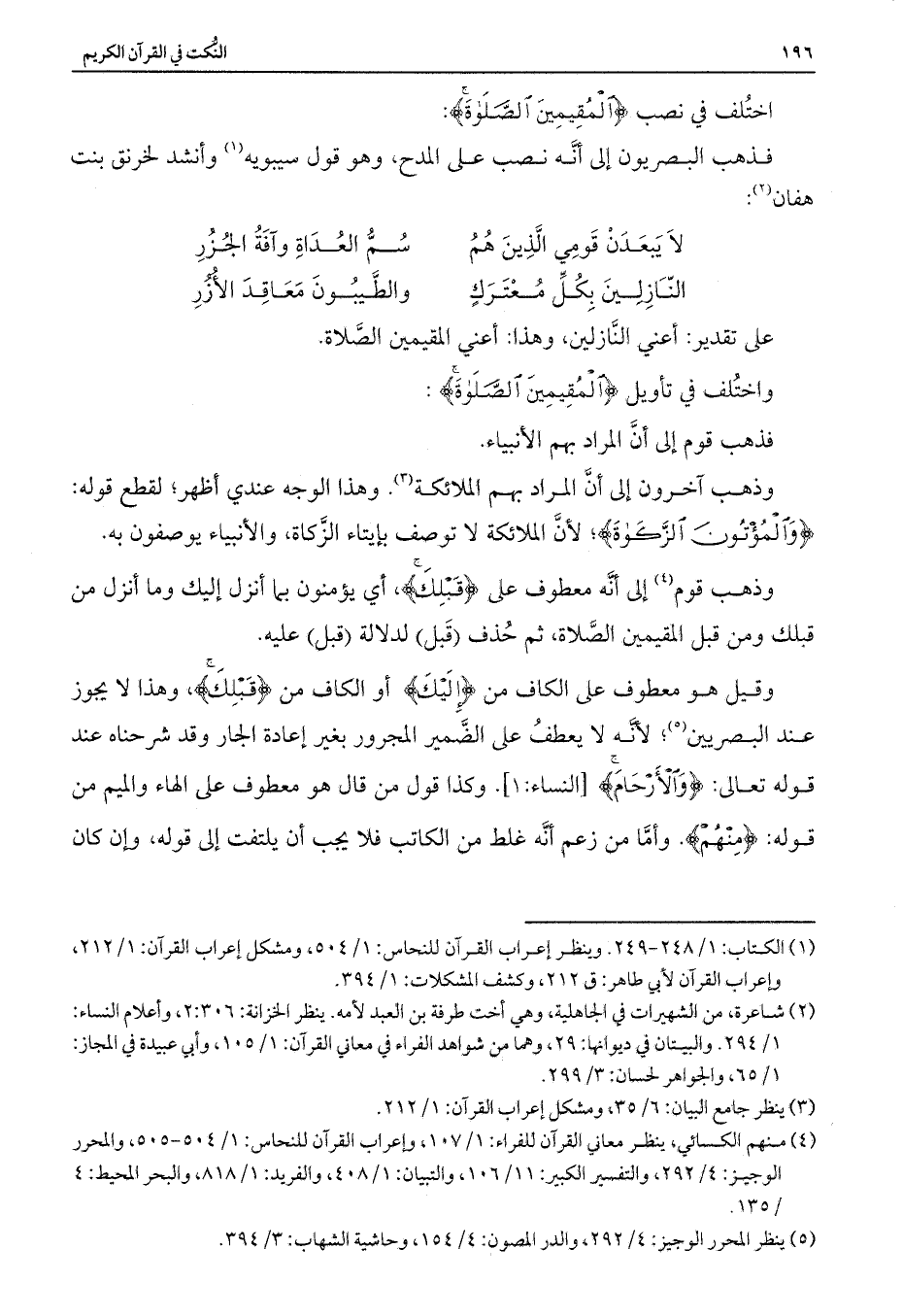 اختلف في نصب {الْمُقِيمِينَ الصَّلَاةَ} :