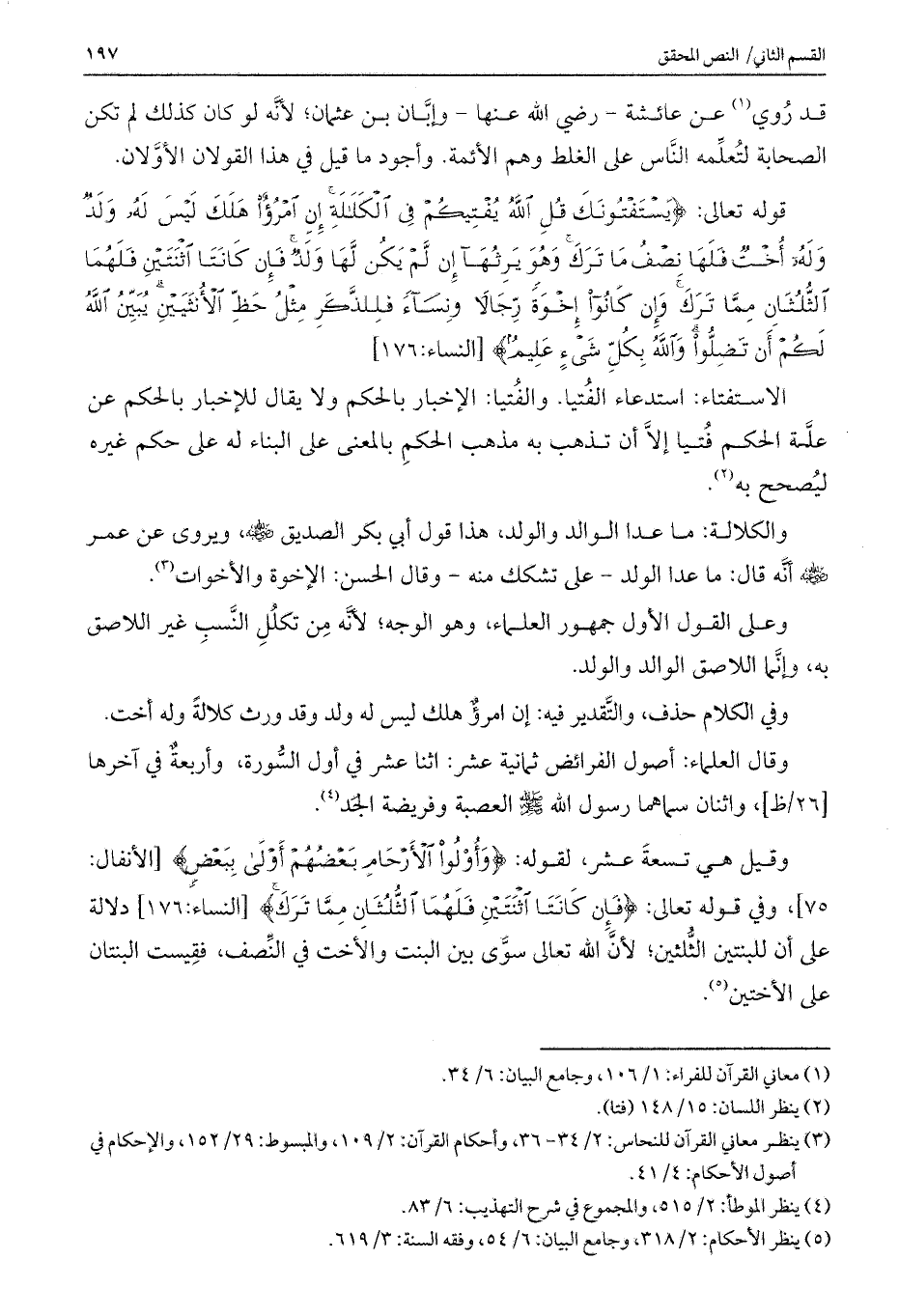 قوله تعالى: {يَسْتَفْتُونَكَ قُلِ اللَّهُ يُفْتِيكُمْ فِي الْكَلَالَةِ إِنِ امْرُؤٌ هَلَكَ لَيْسَ لَهُ وَلَدٌ وَلَهُ أُخْتٌ فَلَهَا نِصْفُ مَا تَرَكَ وَهُوَ يَرِثُهَا إِنْ لَمْ يَكُنْ لَهَا وَلَدٌ فَإِنْ كَانَتَا اثْنَتَيْنِ فَلَهُمَا الثُّلُثَانِ مِمَّا تَرَكَ وَإِنْ كَانُوا إِخْوَةً رِجَالًا وَنِسَاءً فَلِلذَّكَرِ مِثْلُ حَظِّ الْأُنْثَيَيْنِ يُبَيِّنُ اللَّهُ لَكُمْ أَنْ تَضِلُّوا وَاللَّهُ بِكُلِّ شَيْءٍ عَلِيمٌ} [النساء: 176]