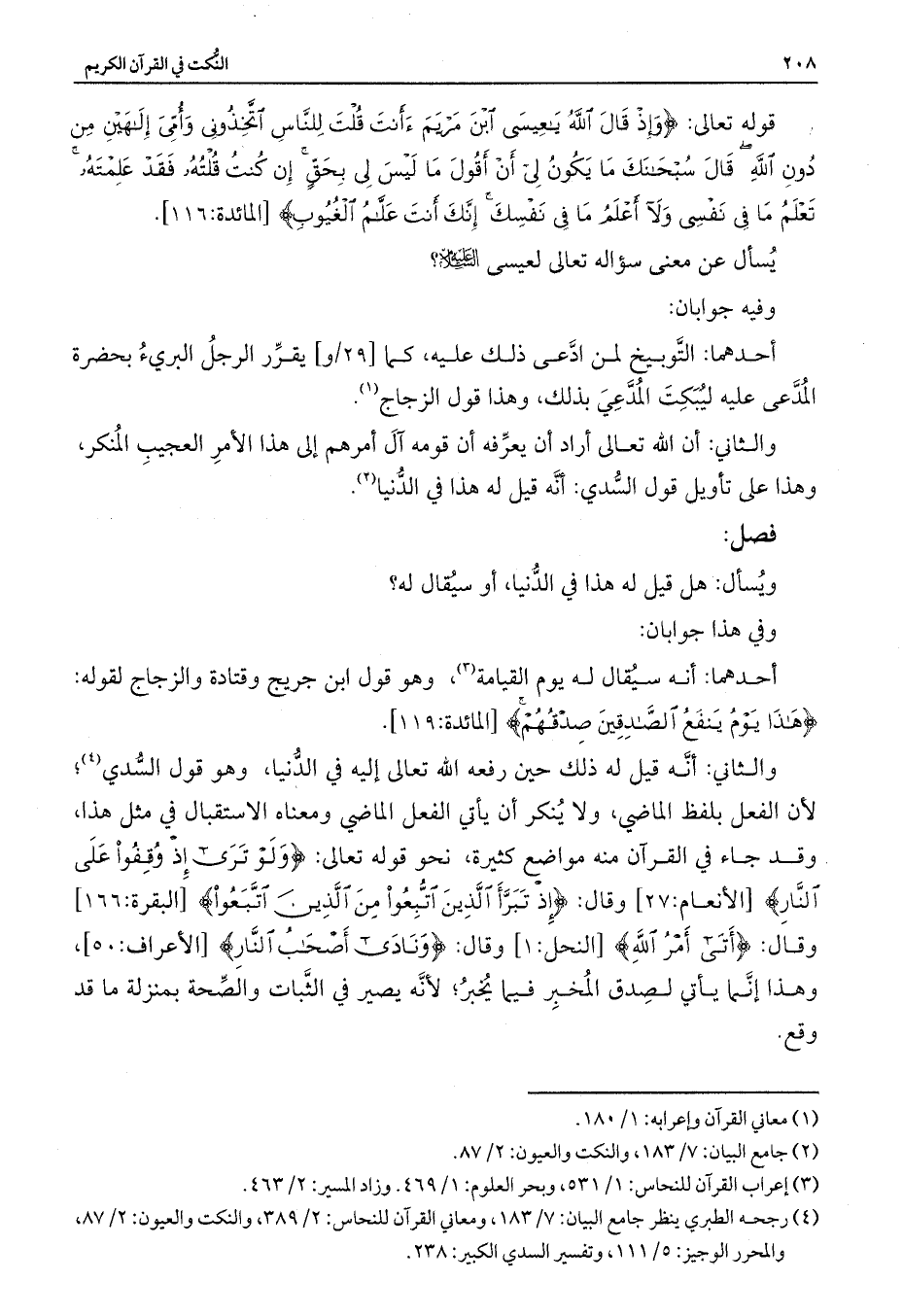 قوله تعالى: {وَإِذْ قَالَ اللَّهُ يَا عِيسَى ابْنَ مَرْيَمَ أَأَنْتَ قُلْتَ لِلنَّاسِ اتَّخِذُونِي وَأُمِّيَ إِلَهَيْنِ مِنْ دُونِ اللَّهِ قَالَ سُبْحَانَكَ مَا يَكُونُ لِي أَنْ أَقُولَ مَا لَيْسَ لِي بِحَقٍّ إِنْ كُنْتُ قُلْتُهُ فَقَدْ عَلِمْتَهُ تَعْلَمُ مَا فِي نَفْسِي وَلَا أَعْلَمُ مَا فِي نَفْسِكَ إِنَّكَ أَنْتَ عَلَّامُ الْغُيُوبِ} [المائدة: 116] .