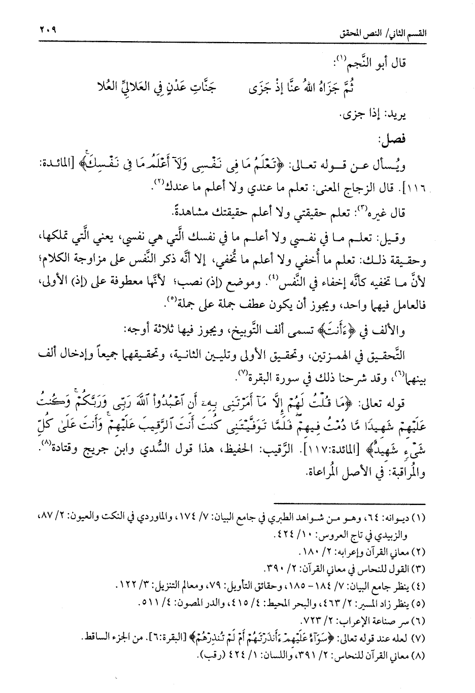 ويسأل عن قوله تعالى: {تَعْلَمُ مَا فِي نَفْسِي وَلَا أَعْلَمُ مَا فِي نَفْسِكَ} [المائدة: 116] . قال الزجاج المعنى: تعلم ما عندي ولا أعلم ما عندك.