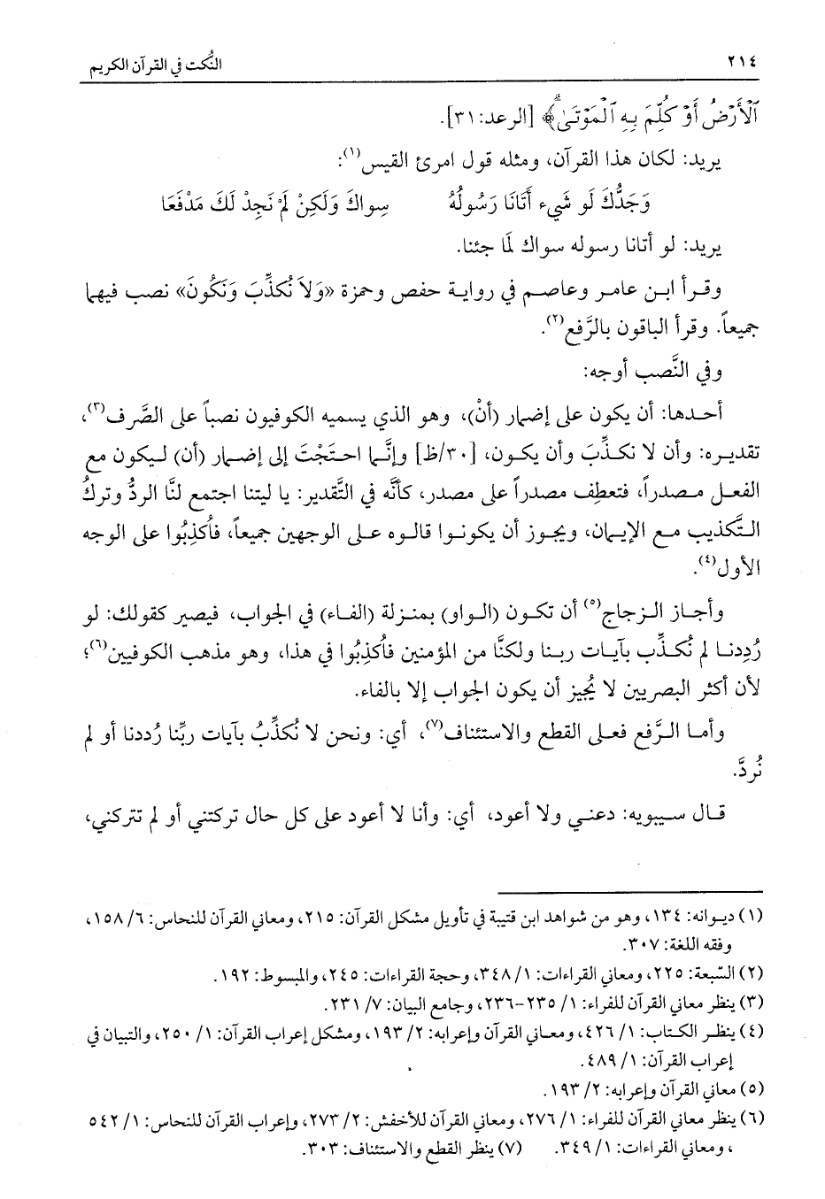 أحدها: أن يكون على إضمار (أنْ) ، وهو الذي يسميه الكوفيون نصباً على الصرف، تقديره: وأن لا نكذب وأن يكون، وإنما احتجت إلى إضمار (أن) ليكون مع الفعل مصدراً، فتعطف مصدراً على مصدر، كأنه في التقدير: ياليتنا اجتمع لنا الرد وترك التكذيب مع الإيمان، ويجوز أ، يكونوا قالوه على الوجهين جميعاً، فاكذبوا على الوجه الأول.