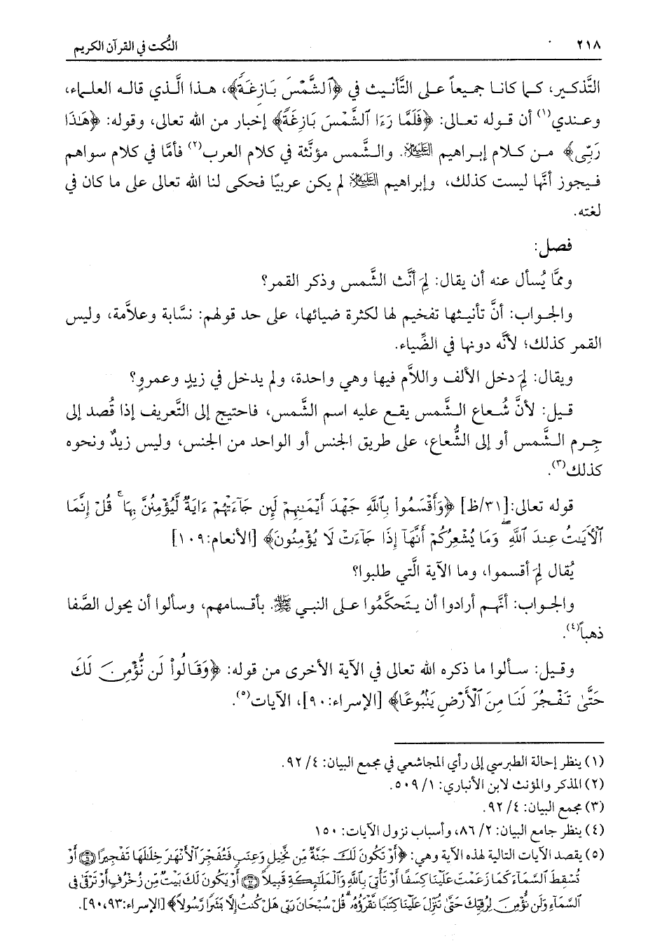 والجواب: أن تأنيثها تفخيم لها لكثرة ضيائها، وعلى حد قولهم: نسابة وعلامة، وليس القمر كذلك؛ لأنه دونها في الضياء.