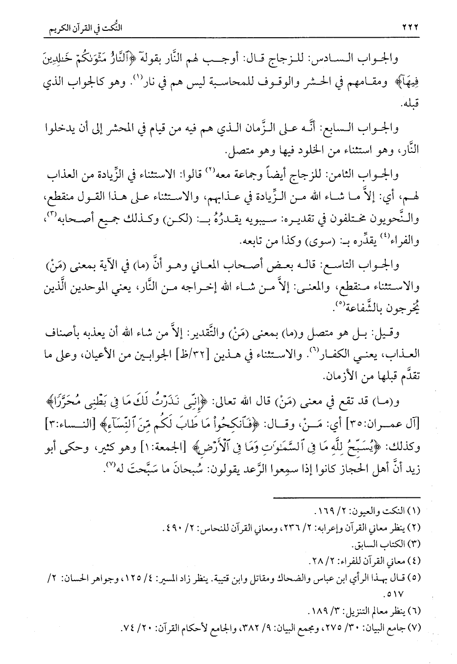 والجواب السادس: للزجاج قال: أوجب لهم النار بقوله {النَّارُ مَثْوَاكُمْ خَالِدِينَ فِيهَا} وقامهم في الحشر والوقوف للمحاسبة ليس هم في نار. وهو كالجواب الذي قبله.