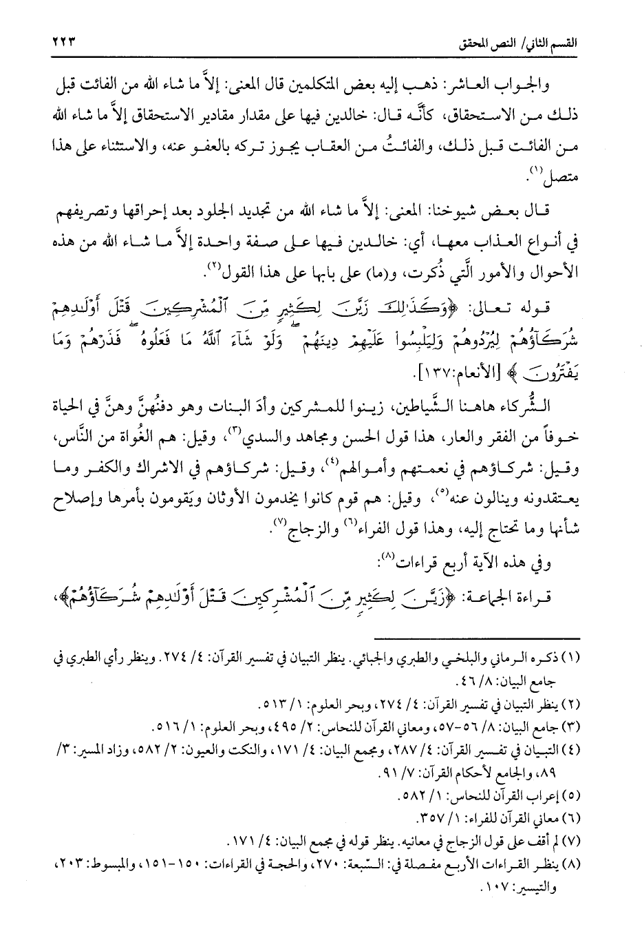 قراءة الجماعة: {زَيَّنَ لِكَثِيرٍ مِنَ الْمُشْرِكِينَ قَتْلَ أَوْلَادِهِمْ شُرَكَاؤُهُمْ} ،