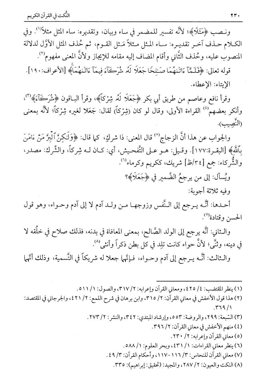 والثالث: أنه يرجع إلى آدم وحواء، فإنهما جعلا له شريكاً في التسمية، وذلك أنهما