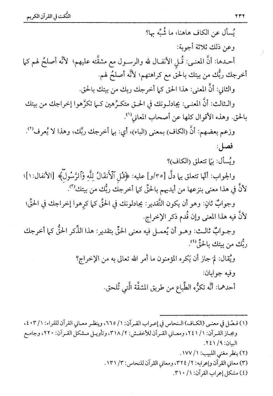 والثالث: أن المعنى: يجادلونك فل الحق متكرهين كما تكرهوا إخراجك من بيتك الحق. وهذ الأقوال كلها من عن أصحاب المعاني.
