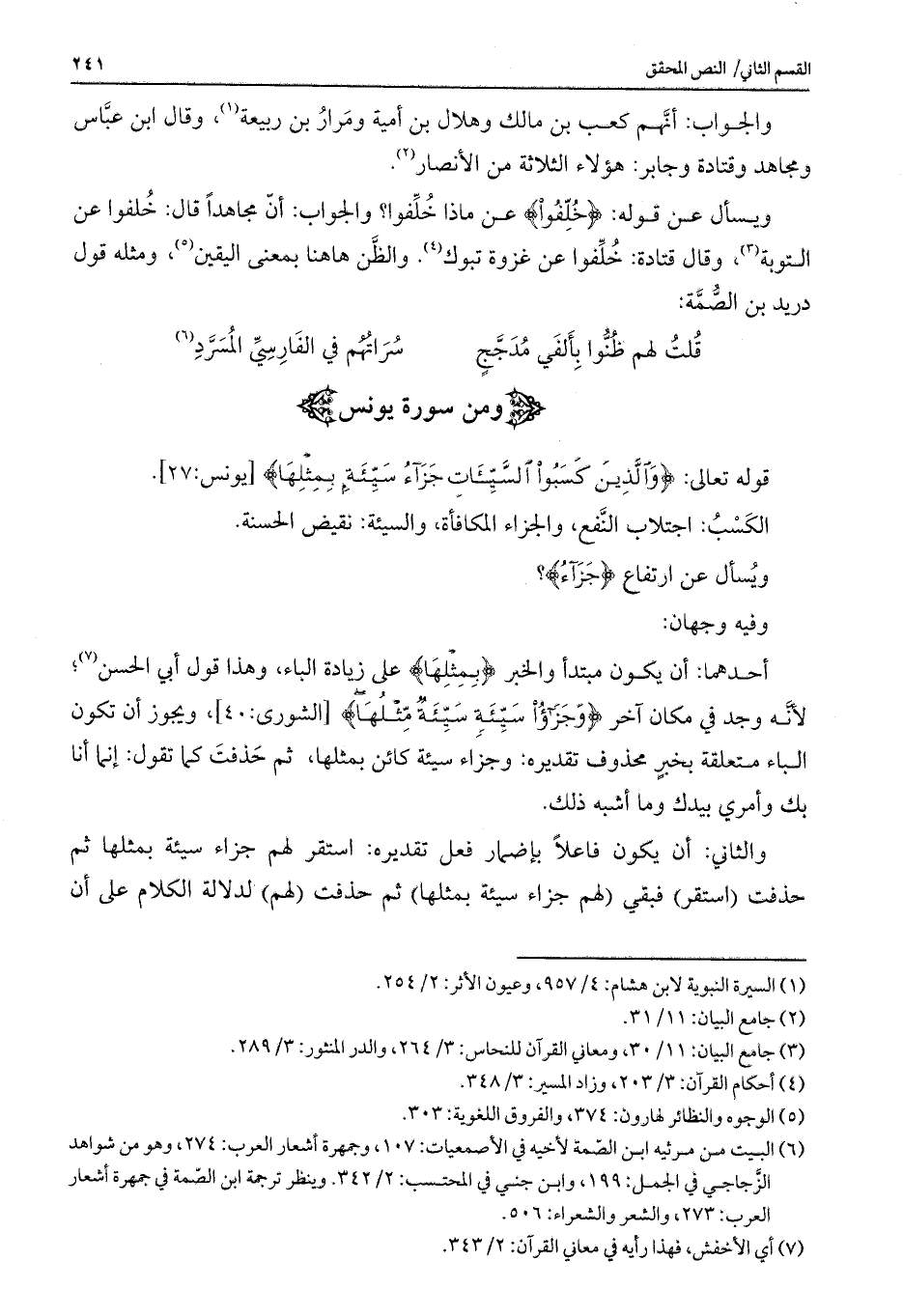 والثاني: أن يكون فاعلاً بإضمار فعل تقديره: استقر لهم جزاء سيئة بمثلها ثم حذفت (استقر) فبقي (لهم جزاء سيئة بمثلها) ثم حذفت (لهم) لدلالة الكلام على أن